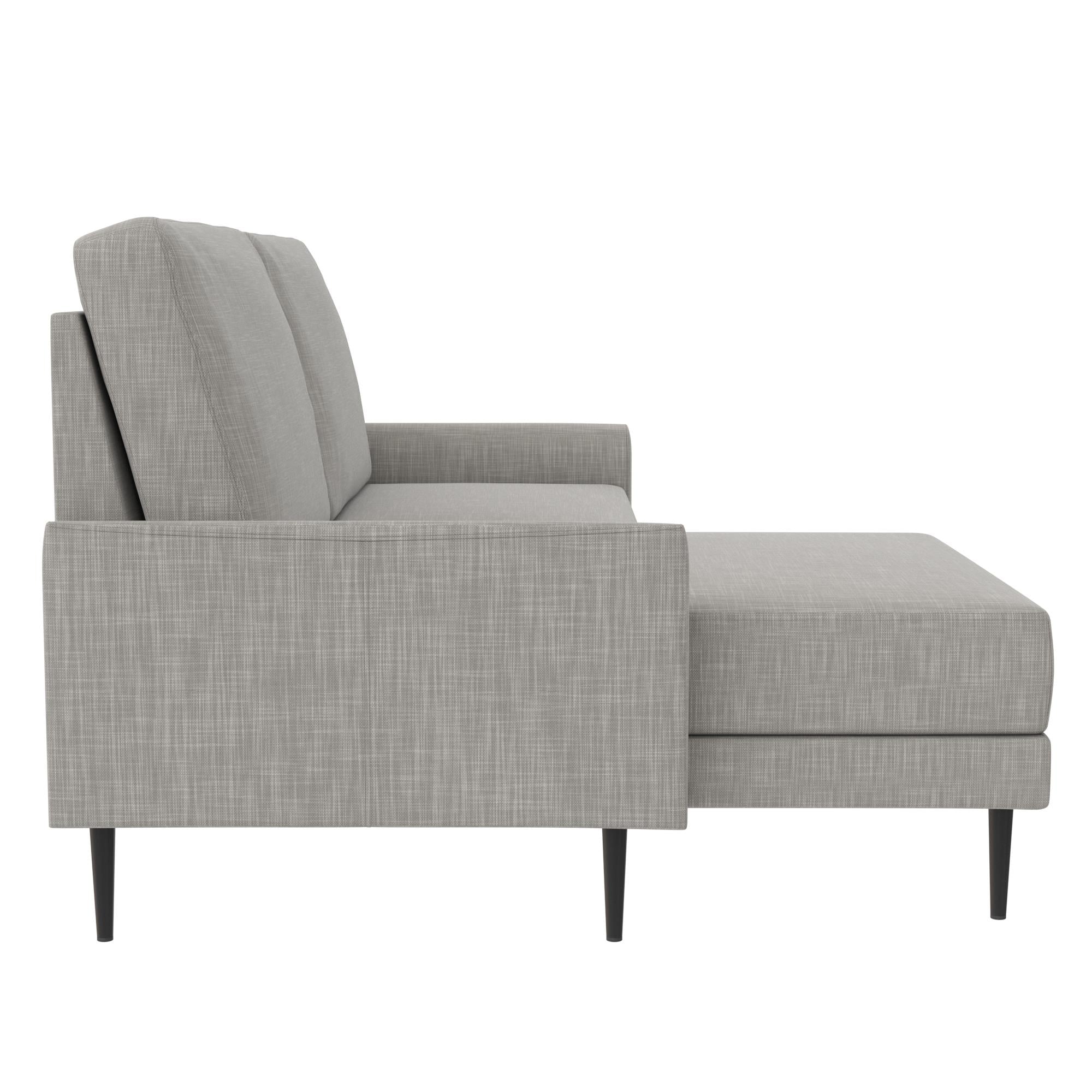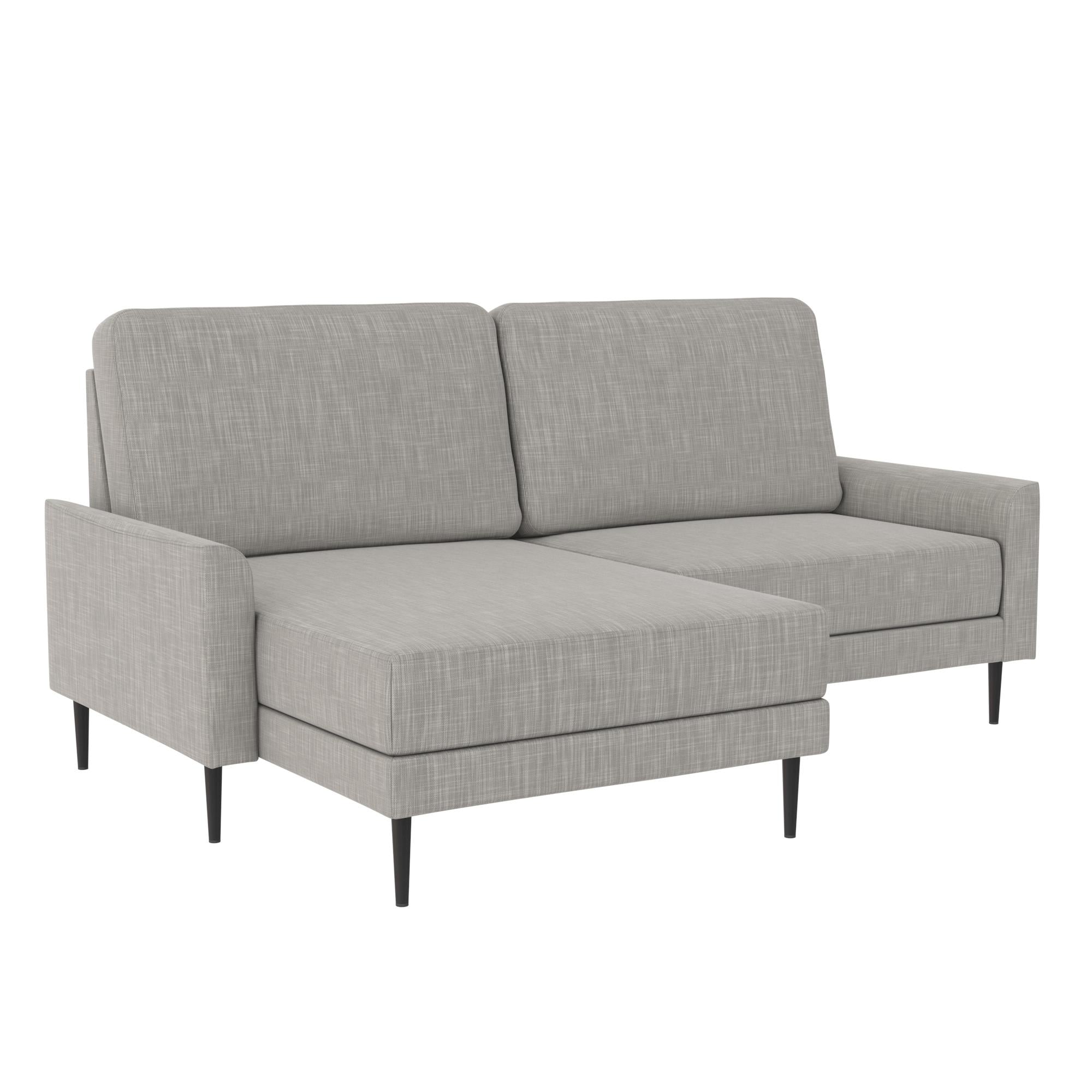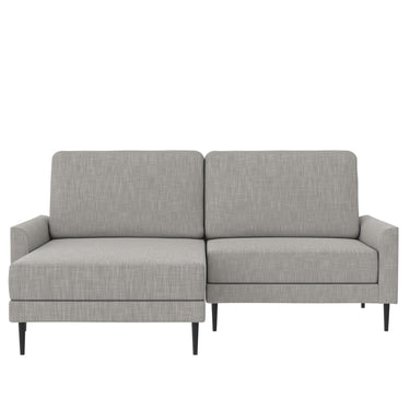 Skab din drømmes fancy damestue med den unapologetisk voldsomme CosmoLiving Francis vendbare sektionssofa. Draperet i lækkert lysegråt linnedpolstring viser Francis sin minimalistiske silhuet og slanke arme placeret oven på slanke sorte metal tilspidsede ben. Hyggelig glam i al sin fulde herlighed, dens uberbløde og behagelige siddepladser vil få dig til at synke tilbage efter en LANG arbejdsdag fra ni til vin. Bygget med en robust og pålidelig ramme af massivt træ, vil dit forhold til Francis helt sikkert overleve al den tid, du bruger sammen med dine eks'er. For ikke at nævne den alsidige Francis har en udskiftelig chaiselong, der kan omplaceres igen og igen, så du ikke permanent skal beslutte dig for layoutet af dit hjem som en ægte Vægt. Læg mærke til, at Francis med sin kompakte dræberform passer perfekt ind i ethvert moderne lejligheds- eller loftrum.