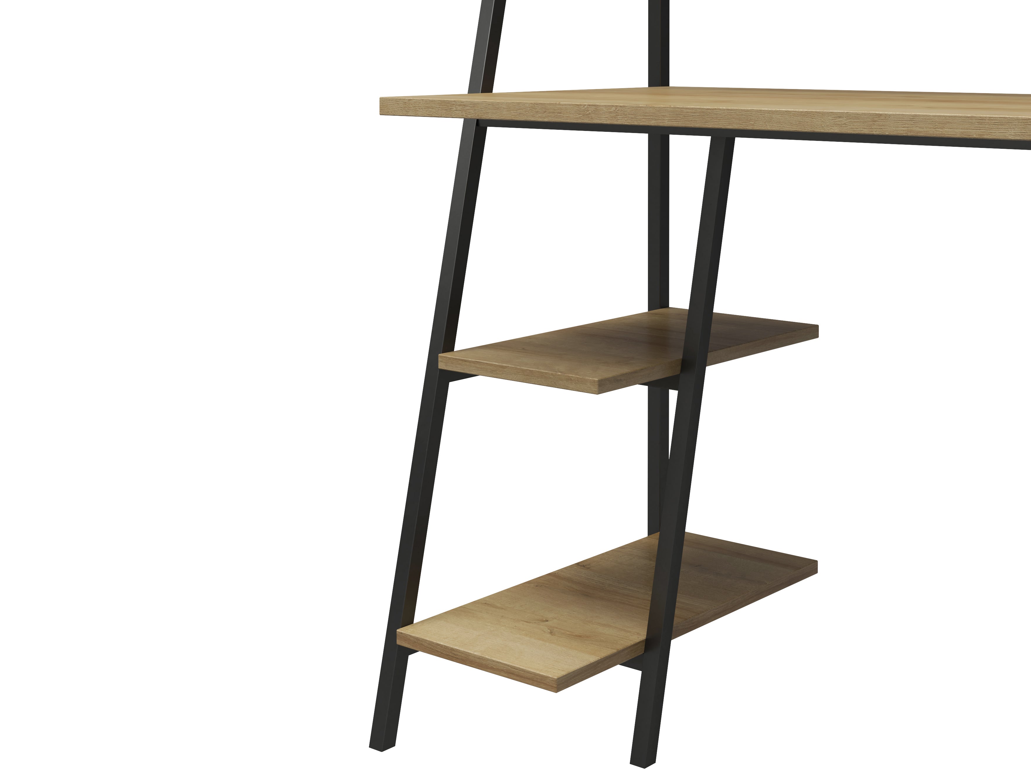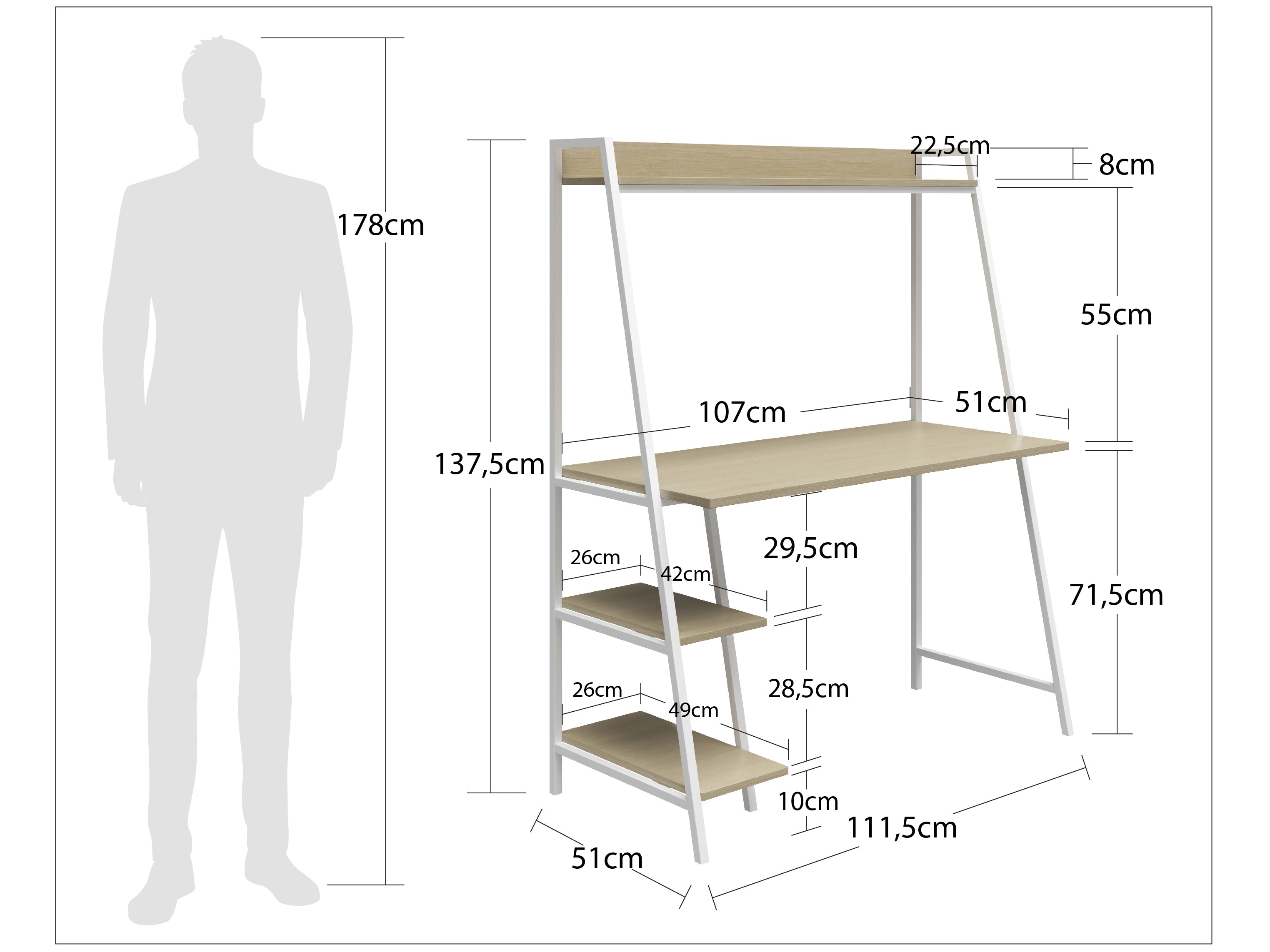 Multifunktionelt stigebord. Perfekt til mindre rum, stigen skrivebordet har et kompakt arbejdsområde. Den er lavet af konstrueret træ og pulverlakeret metal.
