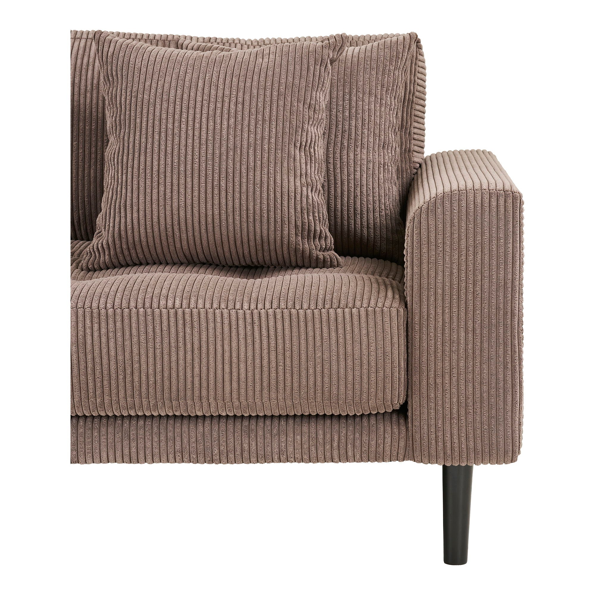 Lounge Sofa, venstrevendt i brun fløjl med fire puder og sorte træben, HN1423