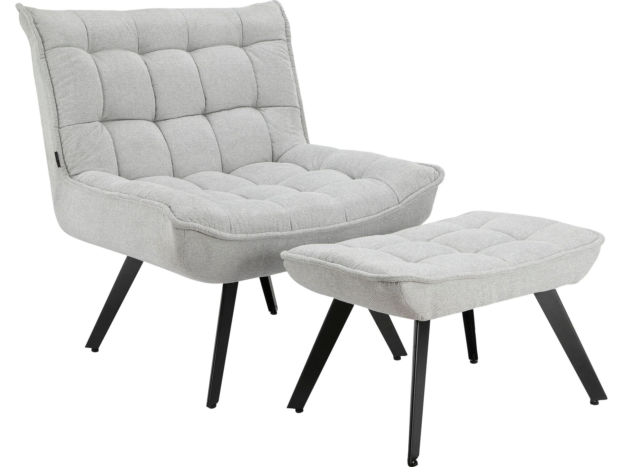 Et attraktivt indretningshøjdepunkt i dit hjem er den hyggelige loungestol Evan med skammel. Den er kendetegnet ved et moderne design og skiller sig ud med sin smukke quiltning på sæde og ryg. Det elegante look afrundes af en stilfuld metalramme. For at opfylde dine personlige behov kan cocktailstolen vælges i forskellige farver. Den er udstyret med en funktionel skammel, hvorpå du kan hvile dine ben komfortabelt. Takket være dens PUR-skumpolstring sikrer loungemøblerne fremragende komfort.