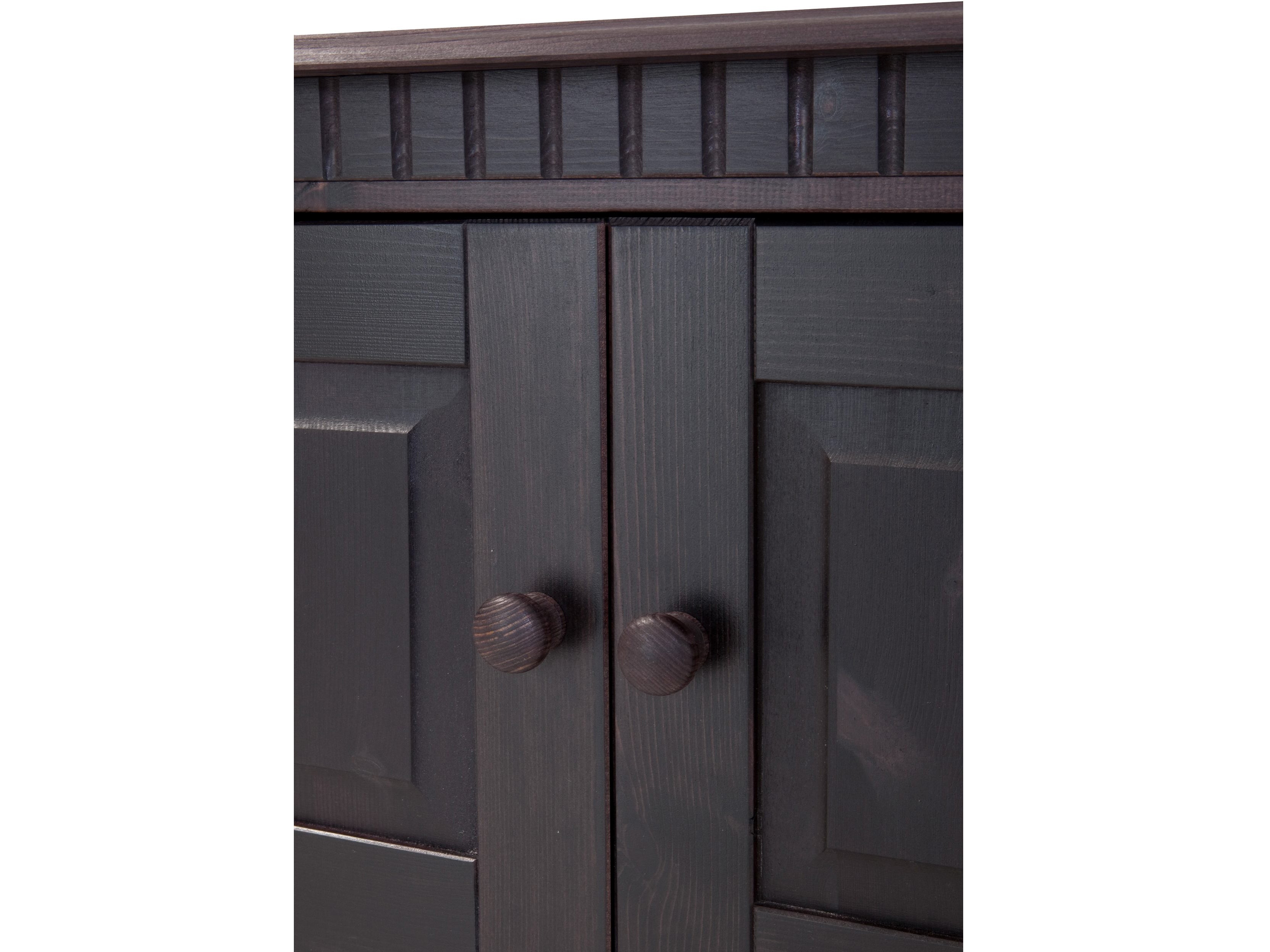 Denne lowboard er lavet af massivt træ og bringer en naturlig stemning ind i dit hjem og vil give dig glæde i lang tid. Dørstopper kan monteres fleksibelt, derfor kan døre monteres til højre eller venstre.