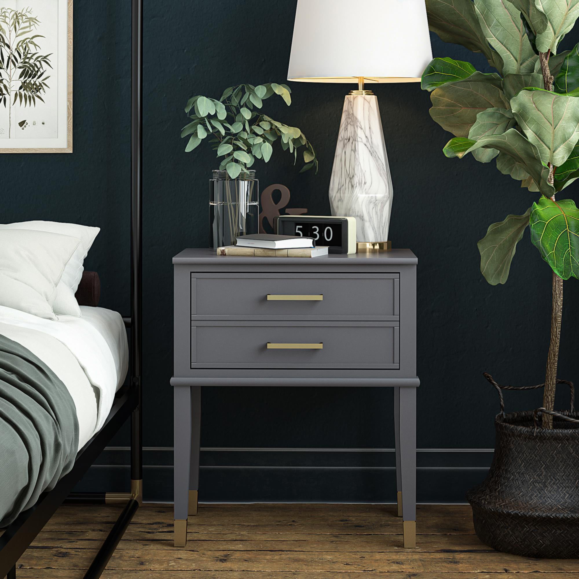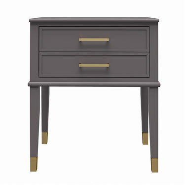 Føj et trendy touch til dit soveværelse med dette natbord. Den store skuffe er designet til at fremstå som to. Det giver rigelig opbevaring. De vintage håndtag i guldlook tilføjer sofistikering. Natbordet er konstrueret af malet MDF og træ, hvilket sikrer robusthed. Det smarte moderne look fuldendes med vintage guldskuffetræk og malede fødder.