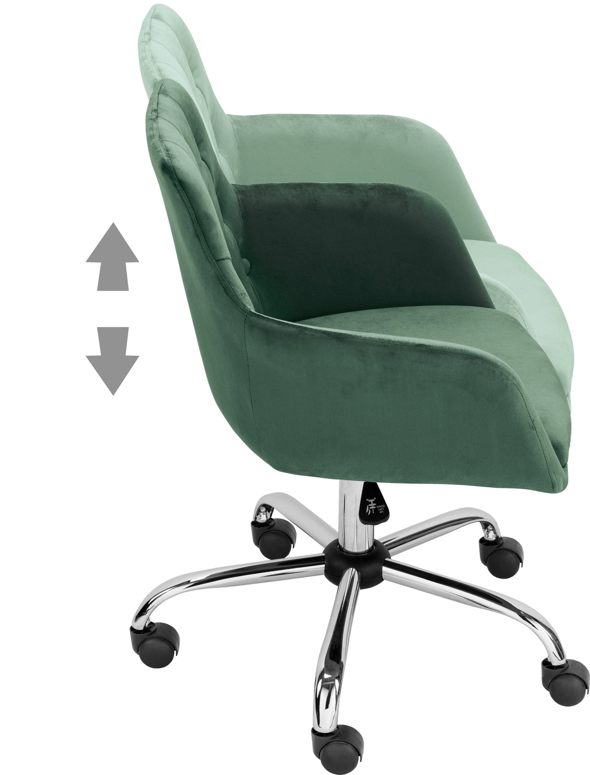 Denne kontorlænestol er et moderne blikfang. Den formidler trendy accenter og er kendetegnet ved sit smagfulde look. Betræksstoffet med den dekorative knappolstring giver denne lænestol sin beroligende appel. Grundlaget er en robust ramme udstyret med plasthjul. Derudover kan stolen tilpasses individuelt til dine egne behov med hensyn til sædedybde og sædehøjde. Dette sikres af en gastrykfjeder, som muliggør mekanisk styring.