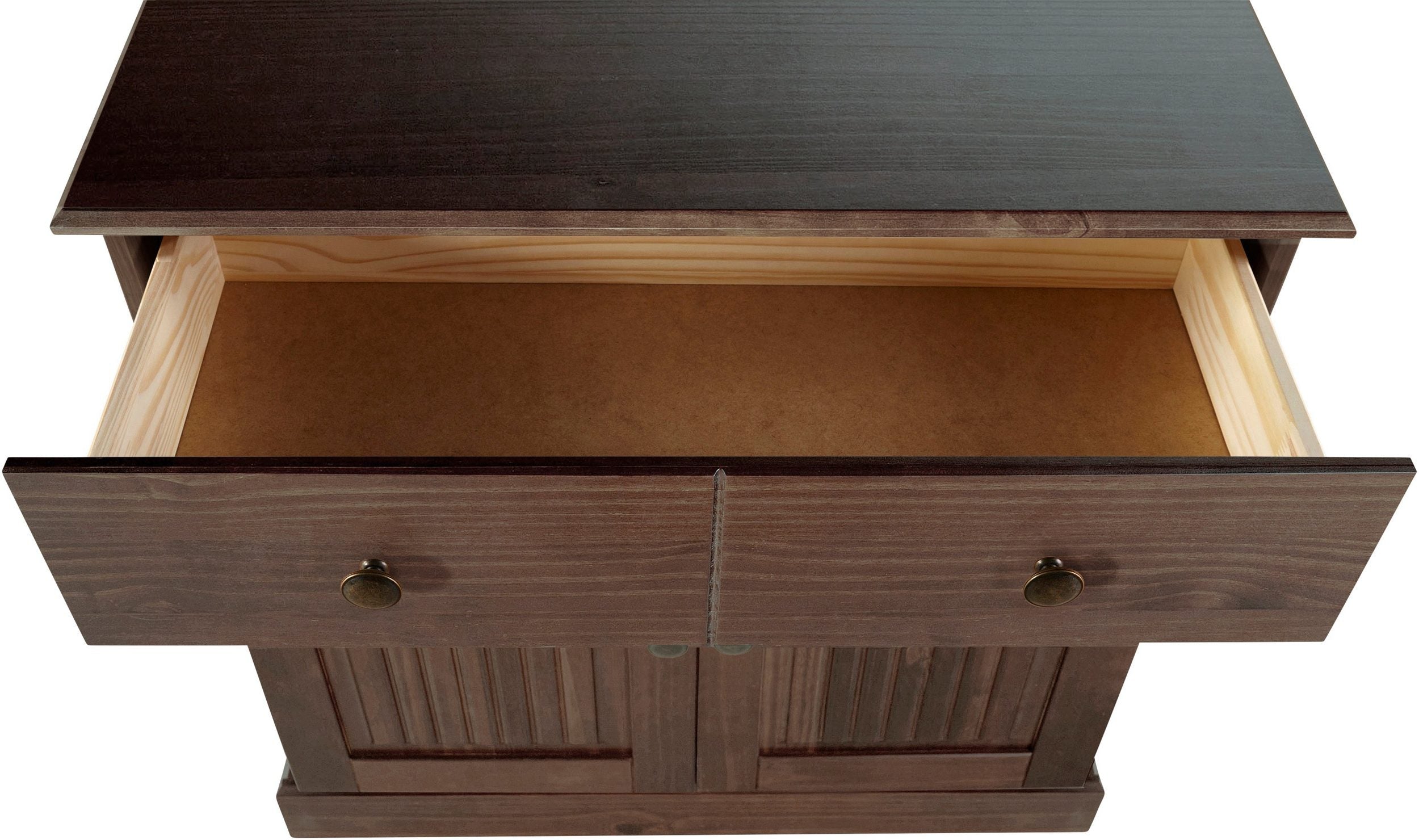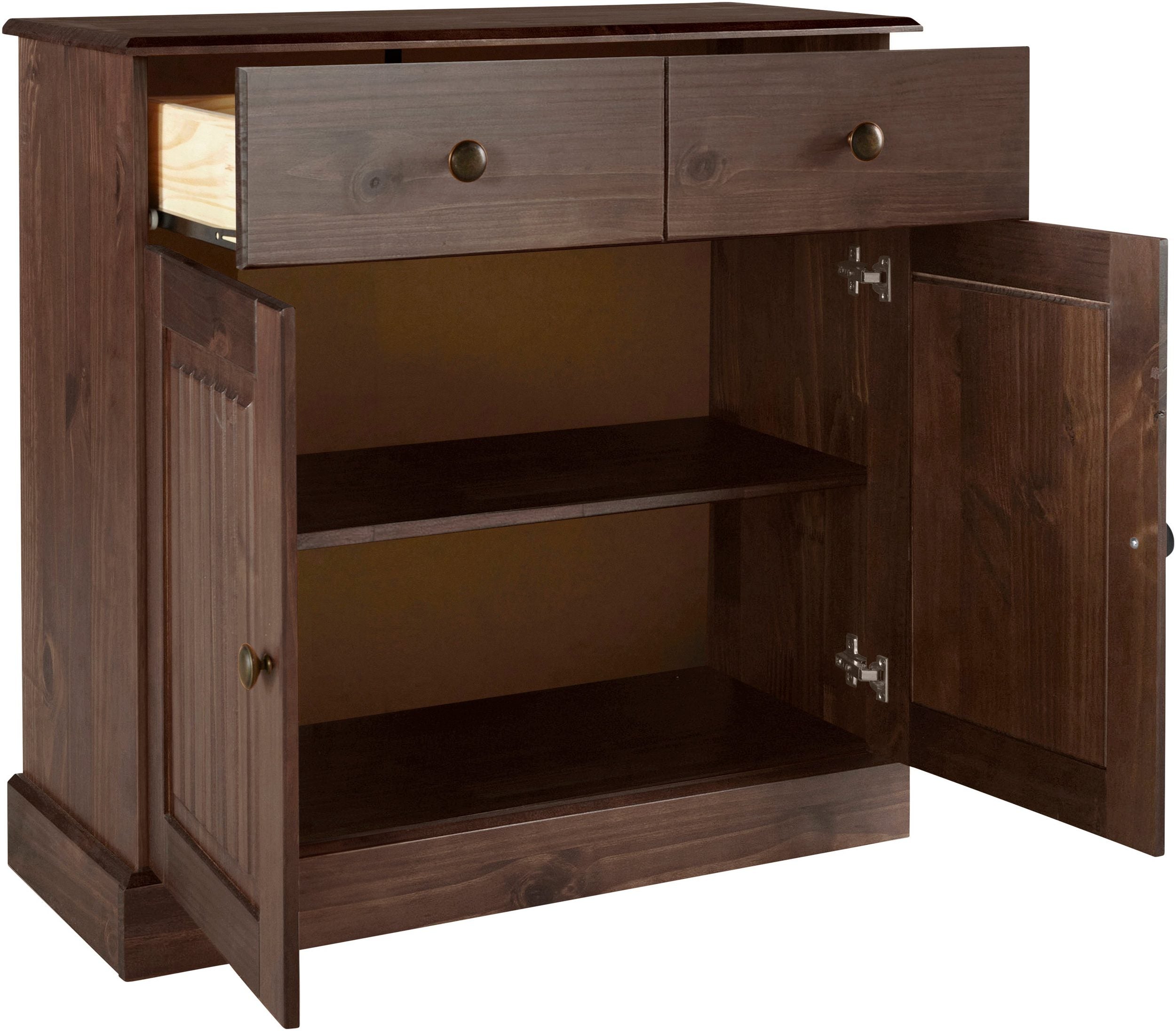 Vi præsenterer vores smukt designede skænk lavet af FSC®-certificeret massivt fyrretræ. Dette elegante stykke har en skuffe, der smart fremstår som to, hvilket giver et stilfuldt touch, mens det tilbyder praktisk opbevaring af dine væsentlige ting. Den justerbare hylde gør det muligt at tilpasse det indvendige rum, så det passer til ethvert behov, hvilket gør det perfekt til udstilling af indretning eller opbevaring af genstande. Med sin naturlige træåre og robuste konstruktion kombinerer denne skænk funktionalitet med æstetisk appel, der tilføjer varme og charme til ethvert rum. Ideel til både moderne og traditionelle interiører, det er et bæredygtigt valg til dit hjem.