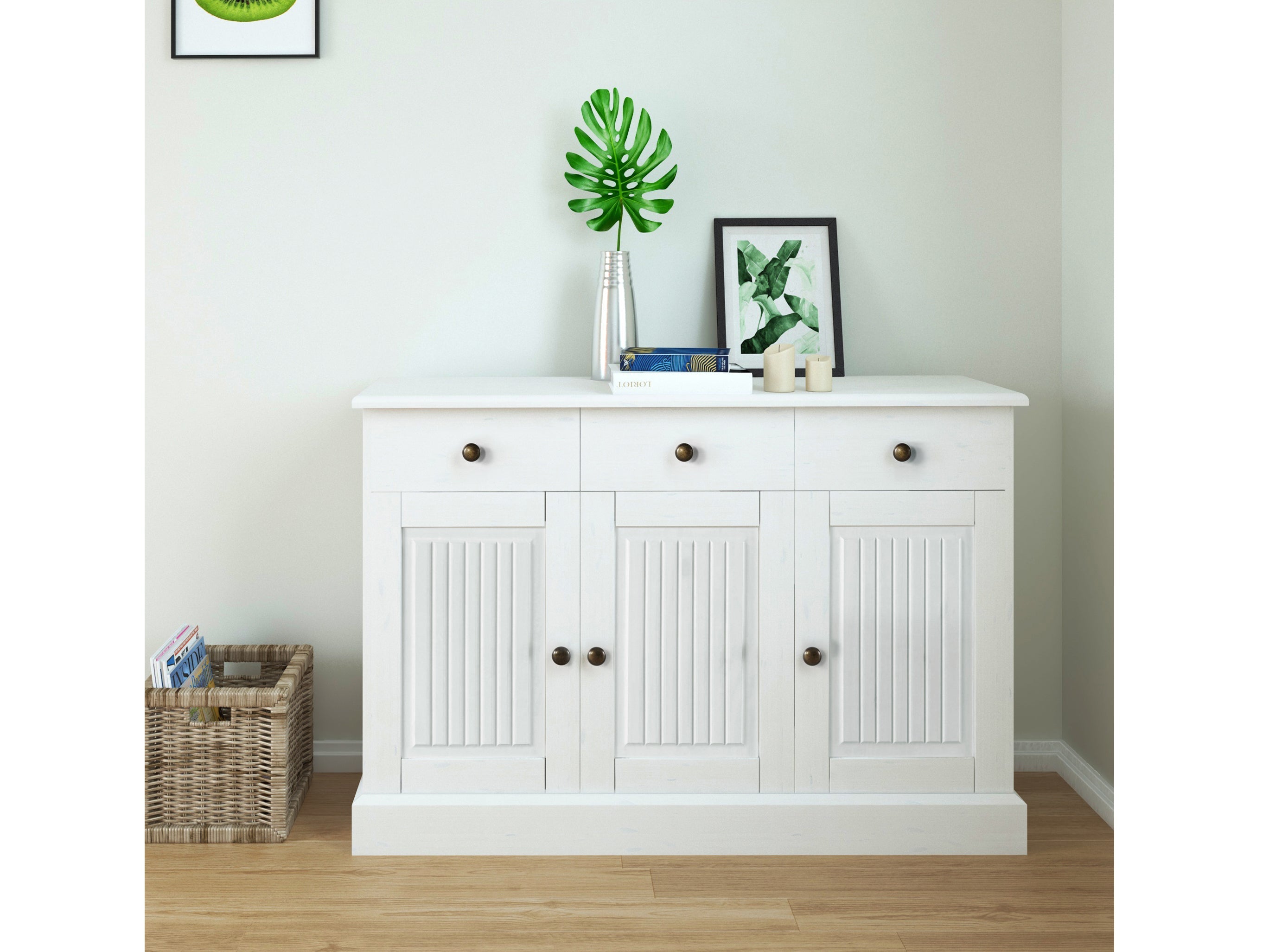 Skænk 3 Låger 2 Skuffer Hvidlak