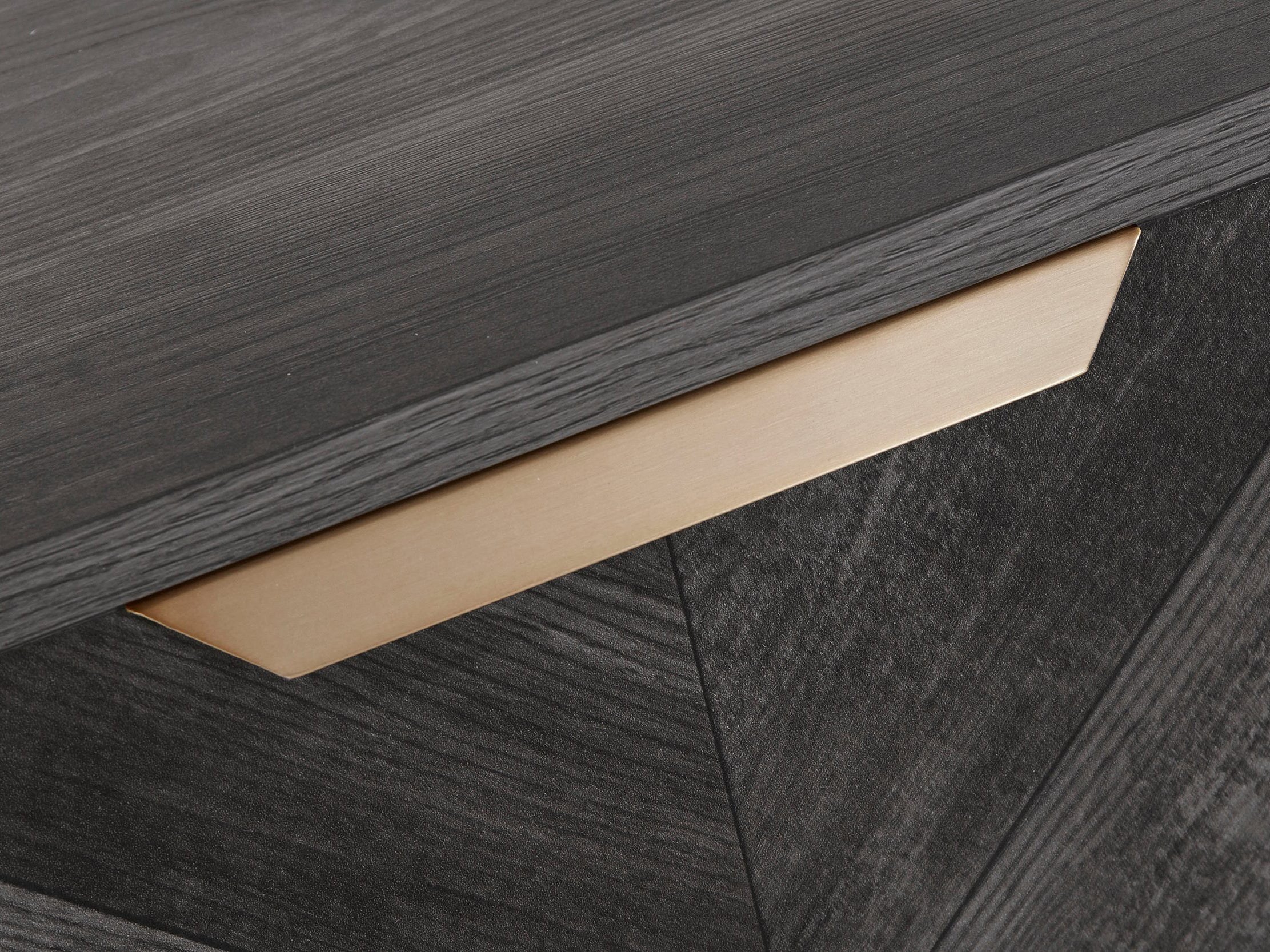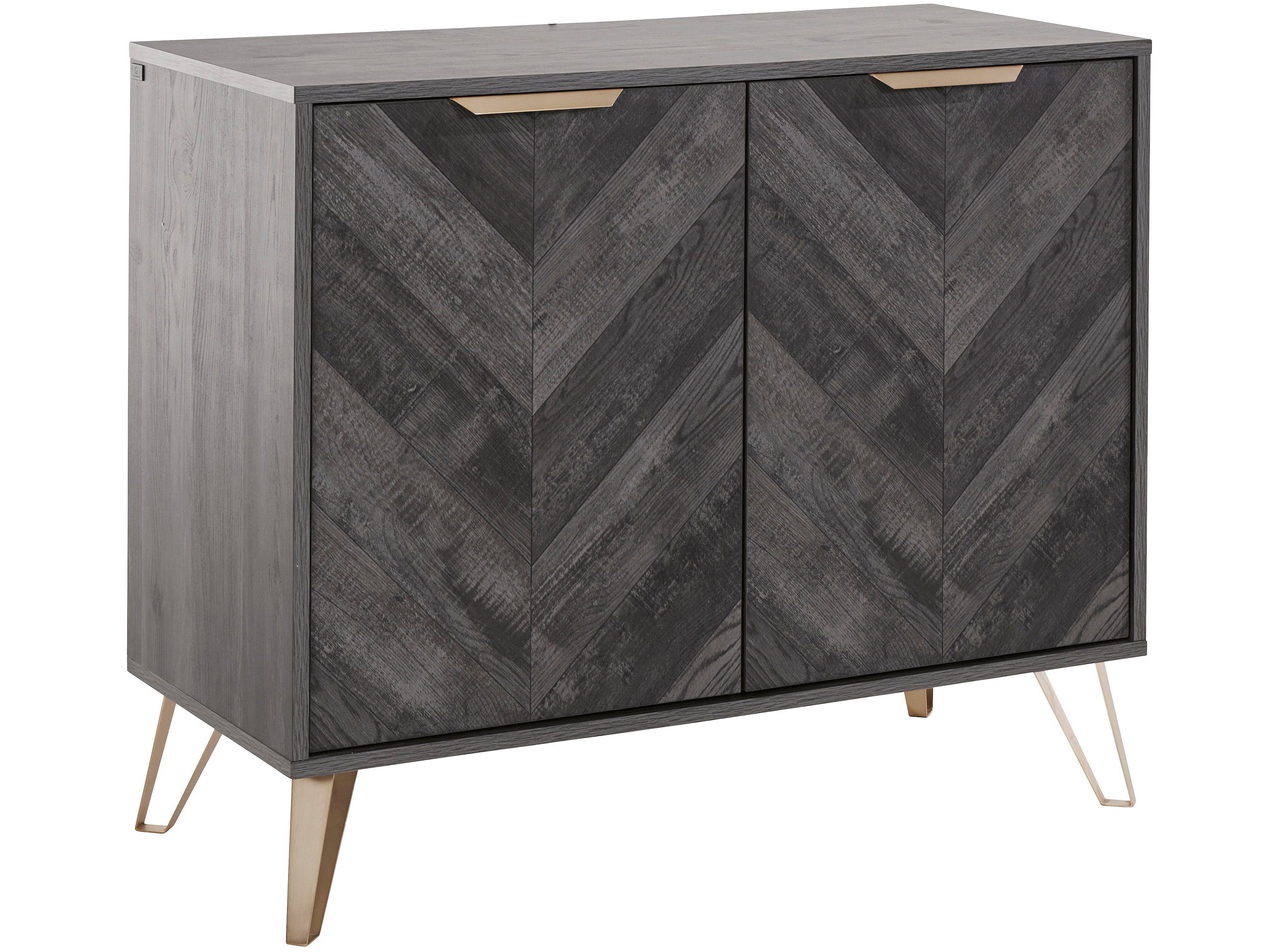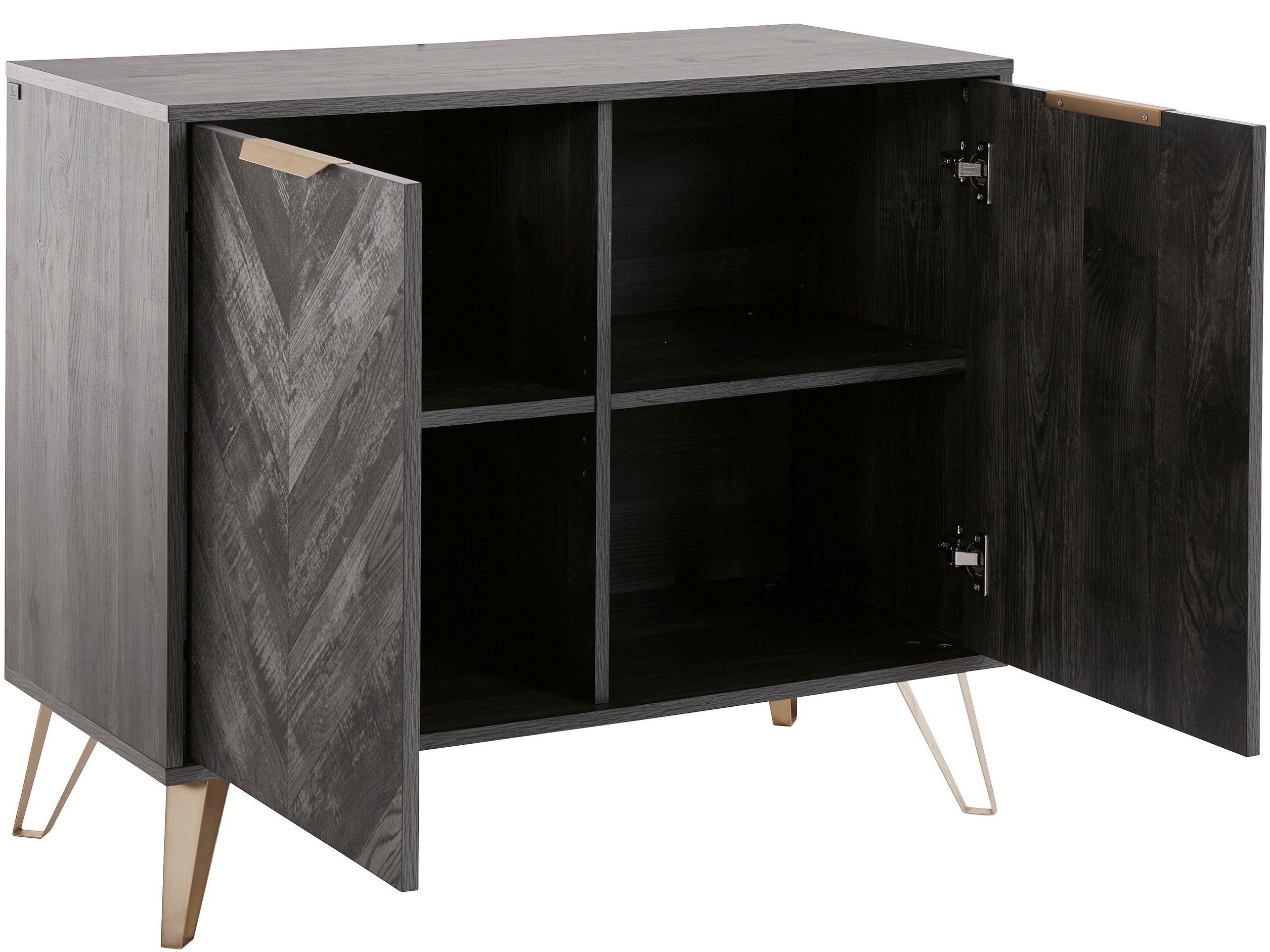 Skænken præsenterer sig selv i et tidløst og moderne udtryk, der kan kombineres på mange måder. Det moderne metalstyr er slidstærkt og understreger stilen. Skænken står på metal hårnålefødder. Med denne skænk i hyggeligt trælook skaber du mere opbevaringsplads og plads til tv'et eller smukke dekorative elementer. Hylderne kan bruges forskelligt. Så du kan selv bestemme højden på de enkelte rum.