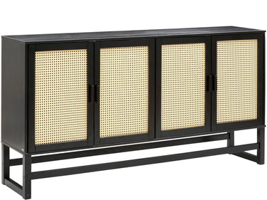 Bring en charme til dit rum med denne smukke og hyggelige skænk i landlig stil. Den er lavet af FSC-certificeret massiv fyrretræ for en let pleje overflade og en robust bygning. Rummene bag 4 rattandøre giver masser af opbevaringsplads. Dens design er præget af smuk farvekombination og træstanghåndtag. Skænken kan nemt samles med den medfølgende hardwaretaske. Med tidløst design er denne skænk nem at mikse og matche med alle eksisterende indretningsstile i dit værelse.