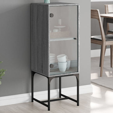 skab med glaslåge 35x37x100 cm grå sonoma-eg