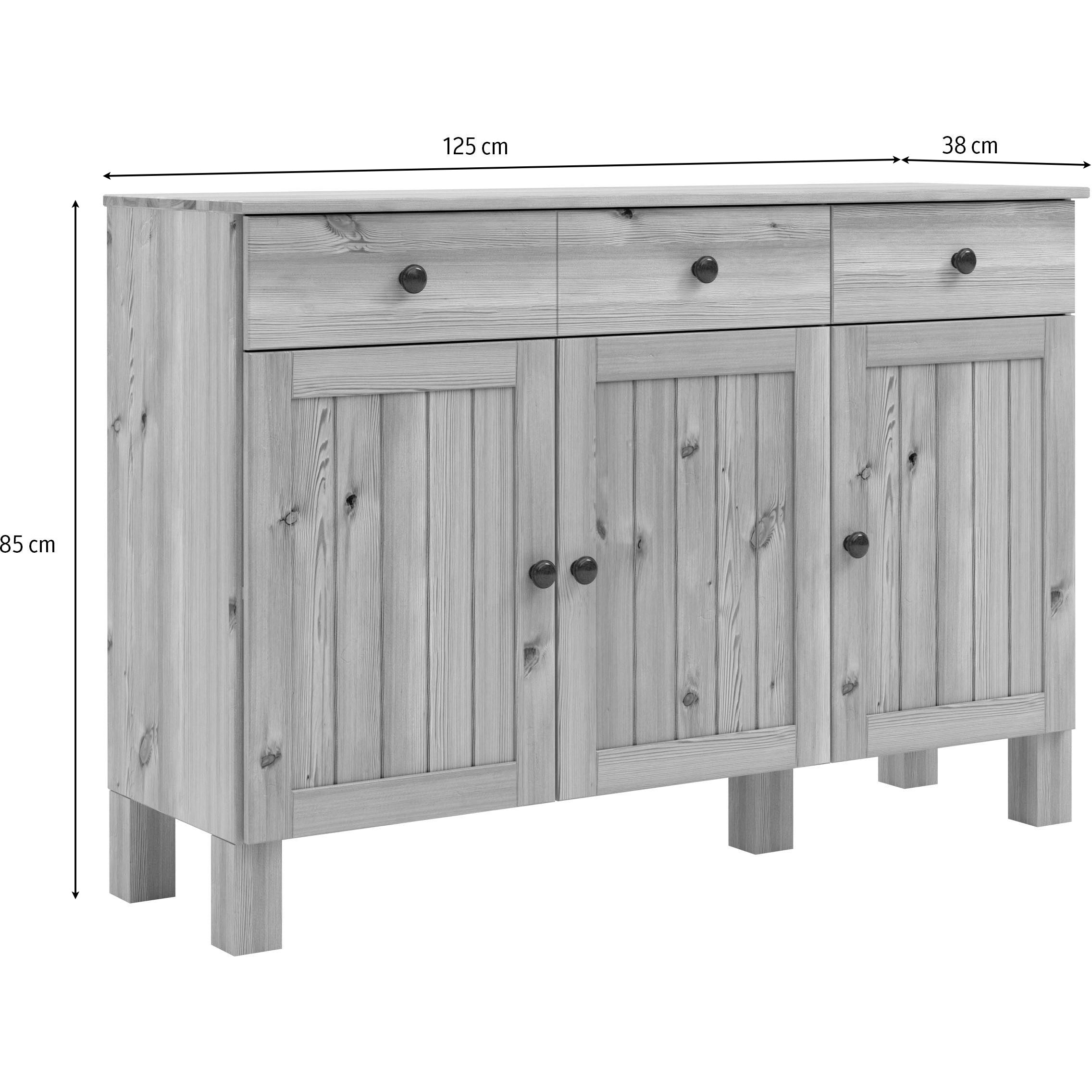 Skænk med 3 låger og 3 skuffer i fyrretræ