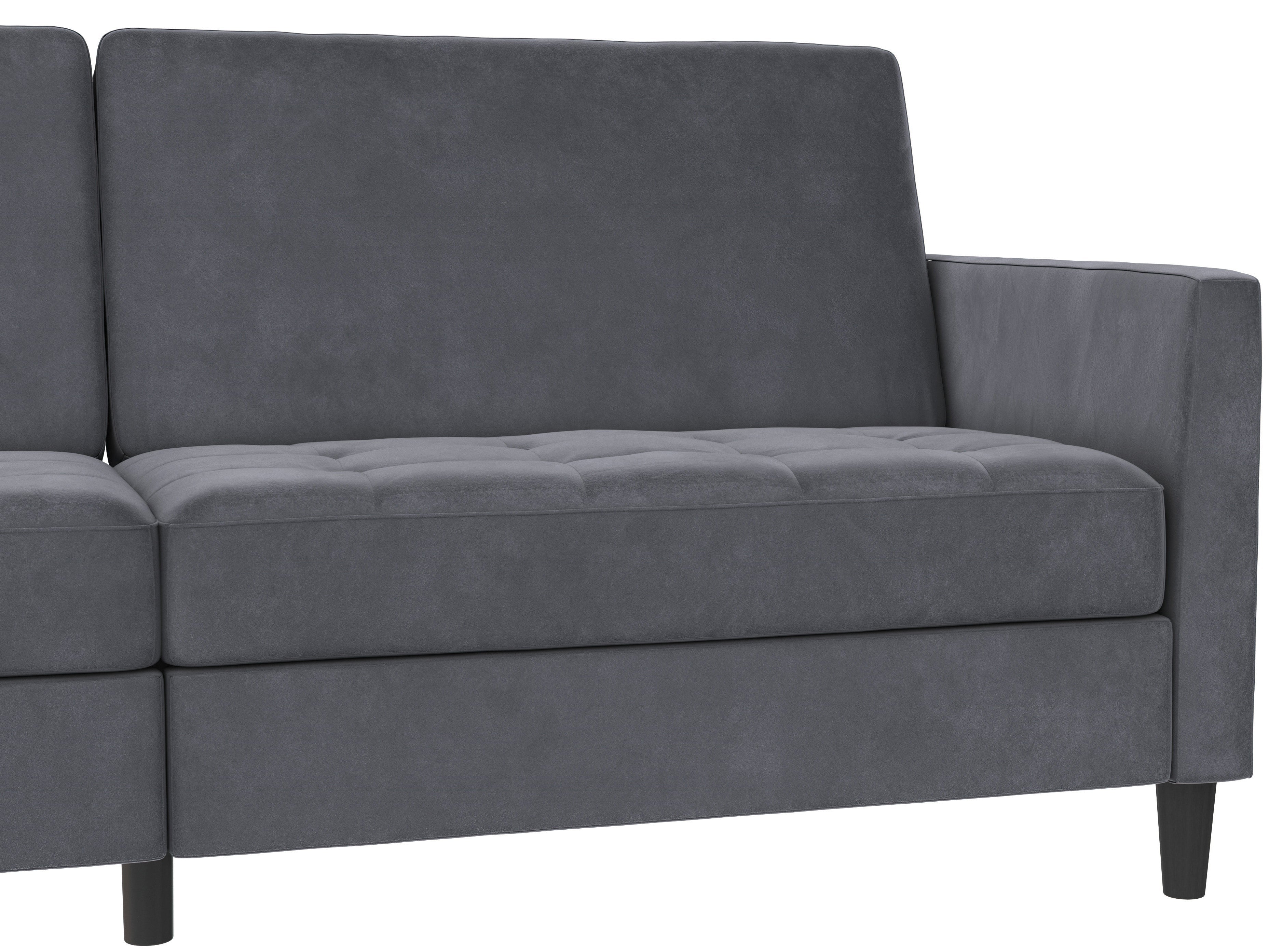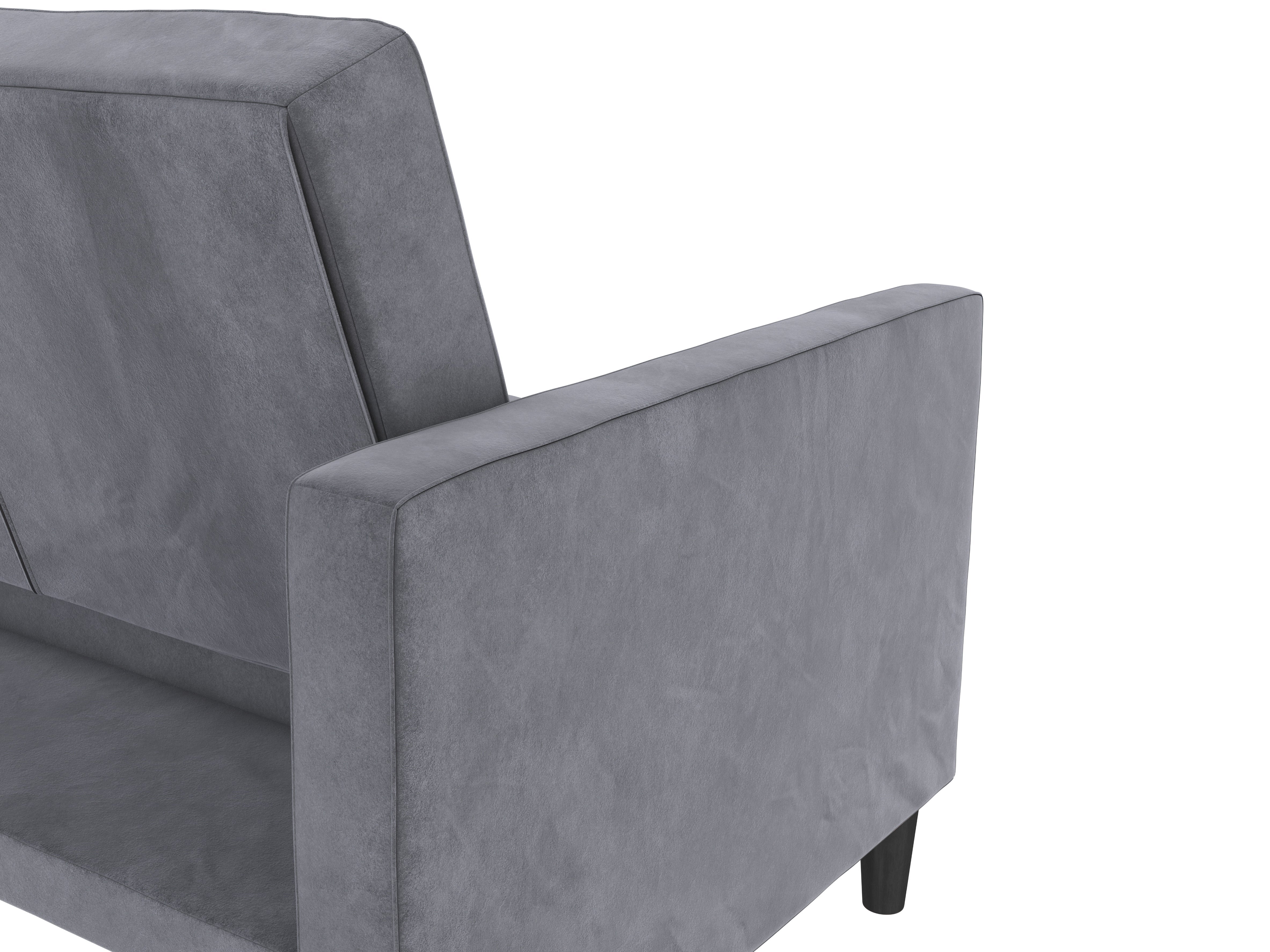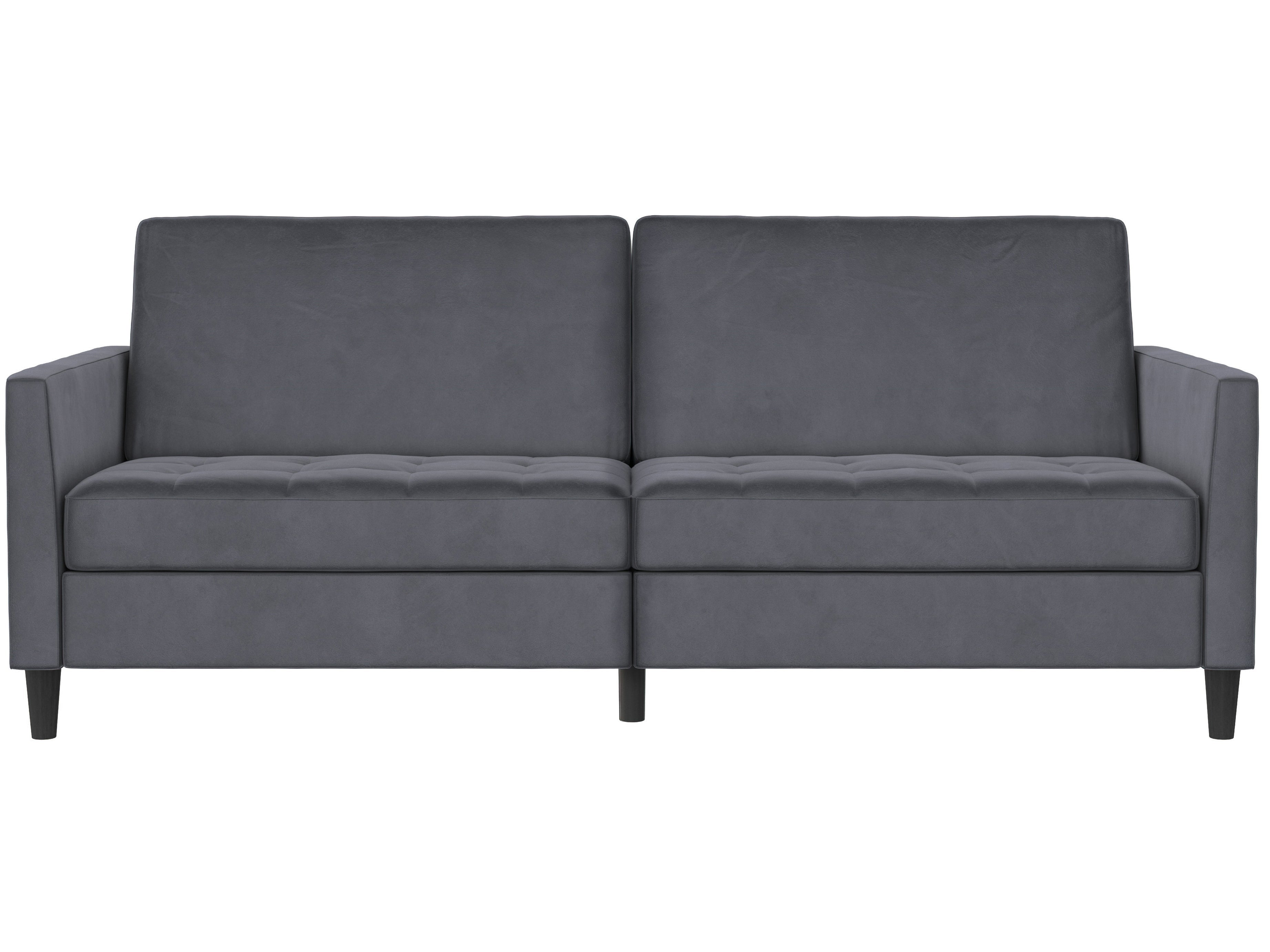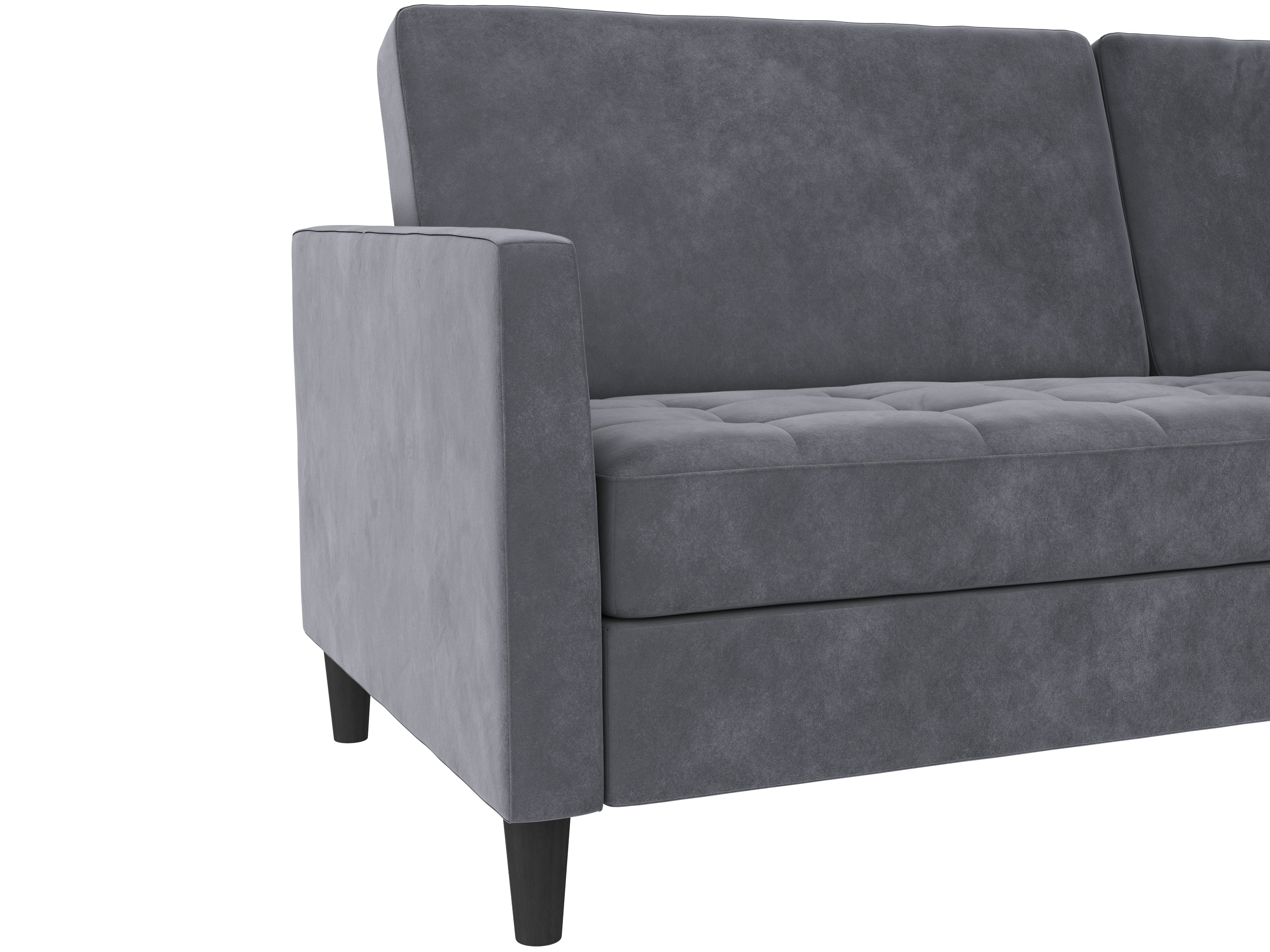 Denne sofa har en moderne stil. Den er bygget med konstrueret træ og fløjlsbetræk. Polstret er fyldt med skum for komfort. Den har en udtrækbar liggeflade og er derfor et sove- og hvileområde i ét. Sofaen kan indstilles manuelt. Den omdannes let til en gæsteseng.