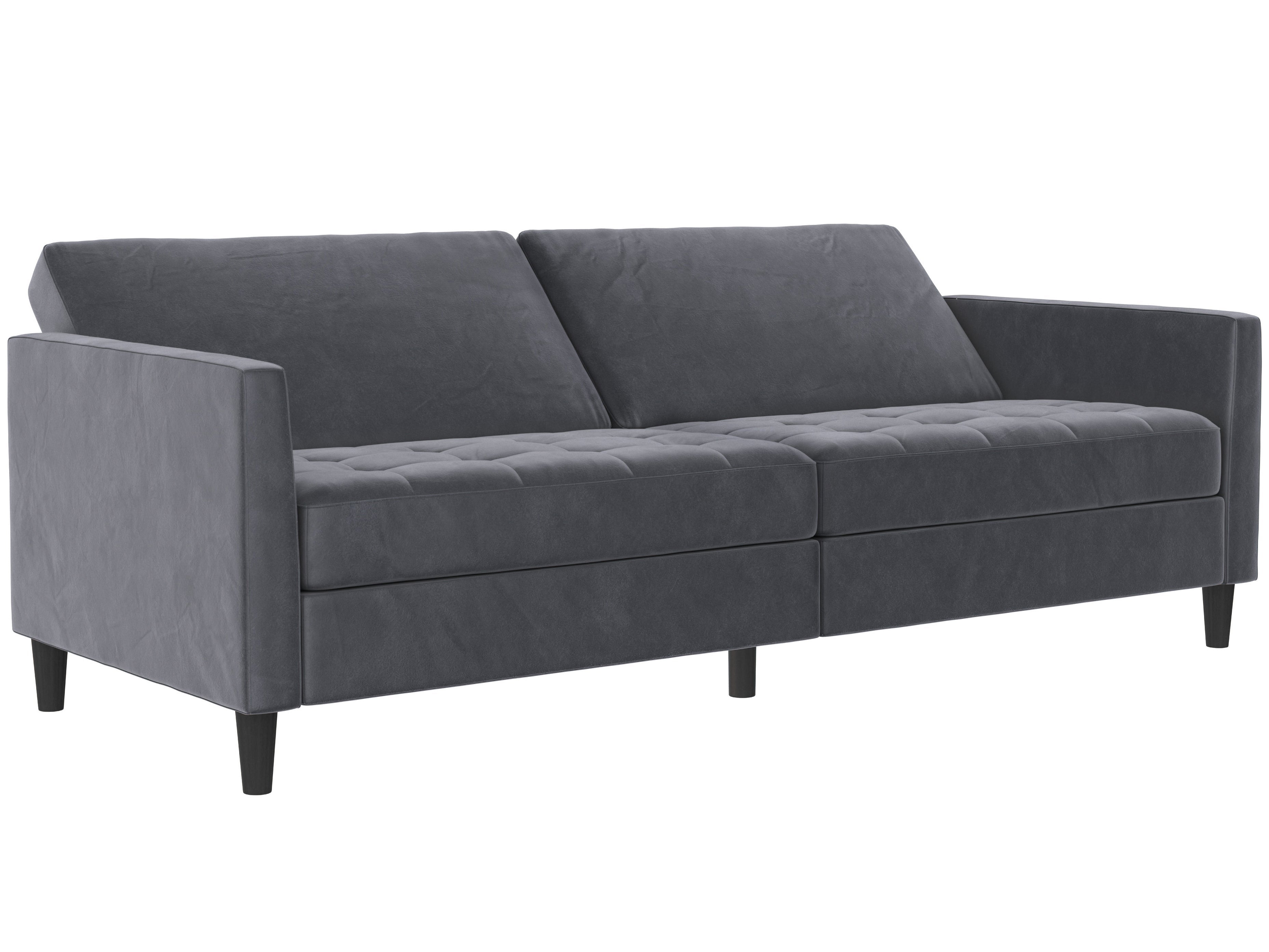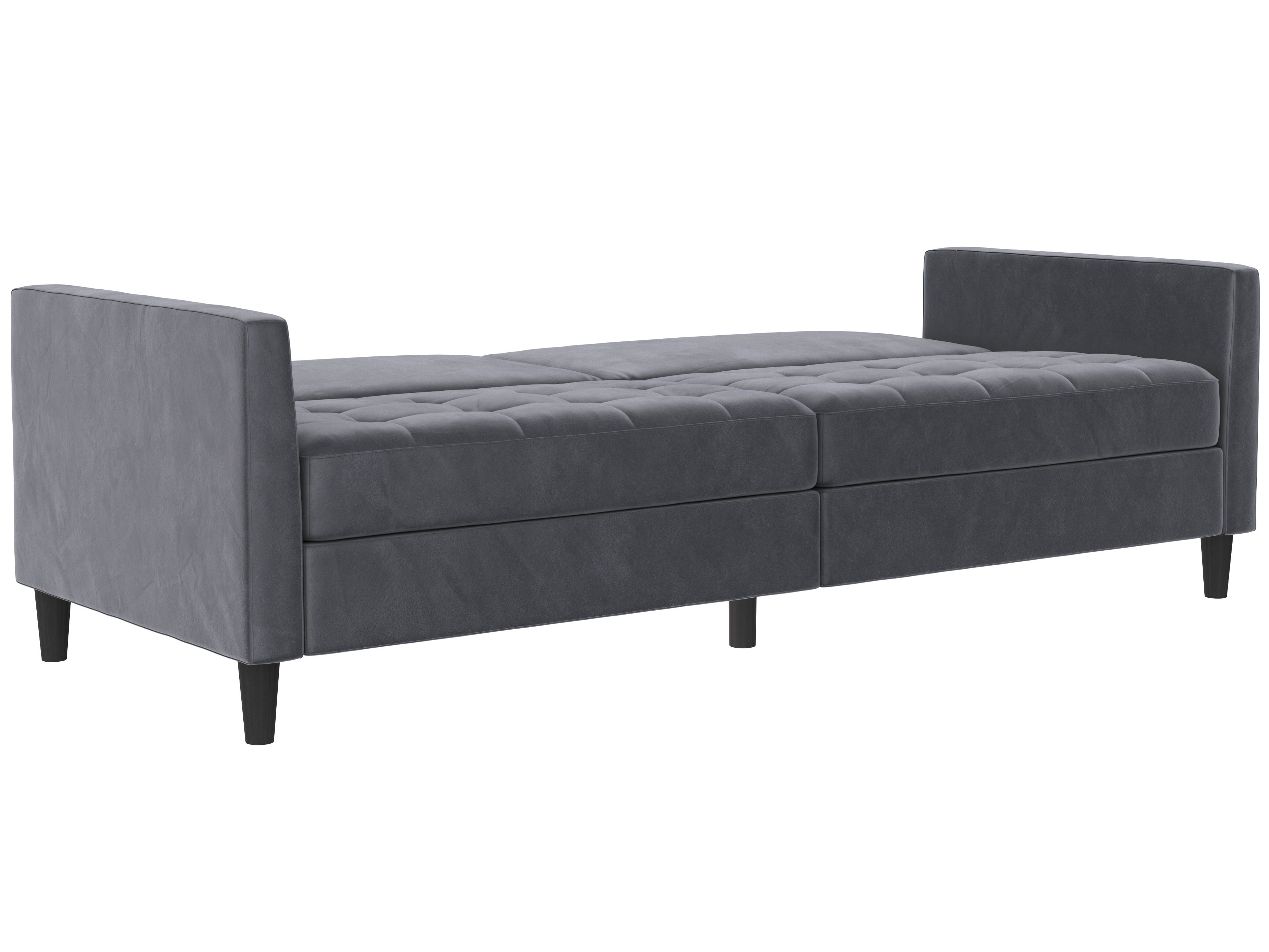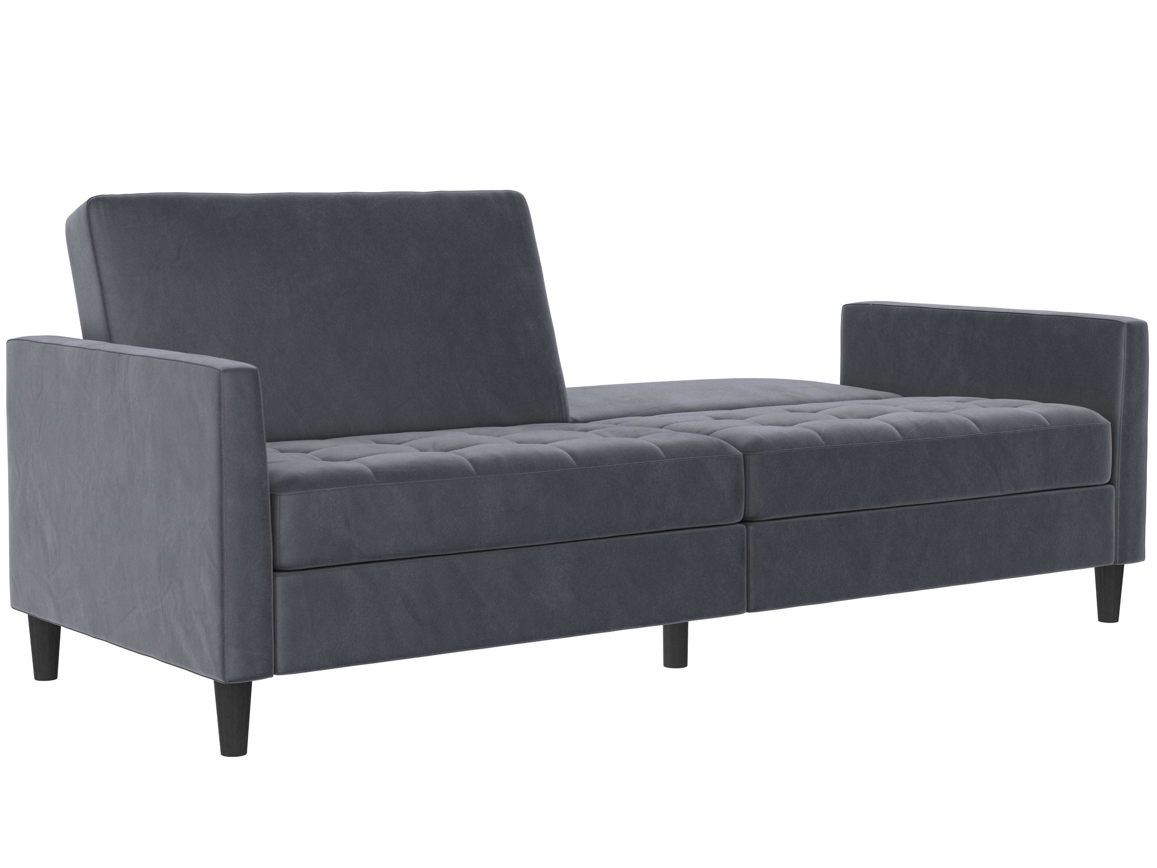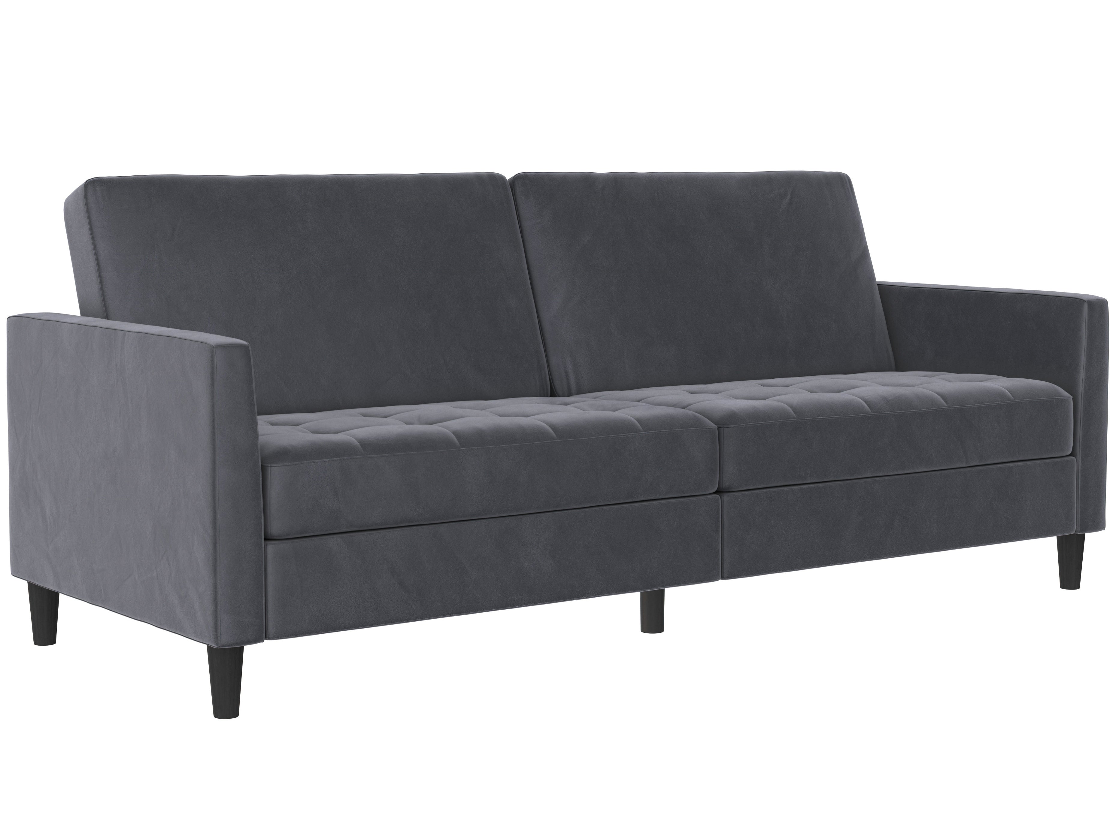 Denne sofa har en moderne stil. Den er bygget med konstrueret træ og fløjlsbetræk. Polstret er fyldt med skum for komfort. Den har en udtrækbar liggeflade og er derfor et sove- og hvileområde i ét. Sofaen kan indstilles manuelt. Den omdannes let til en gæsteseng.