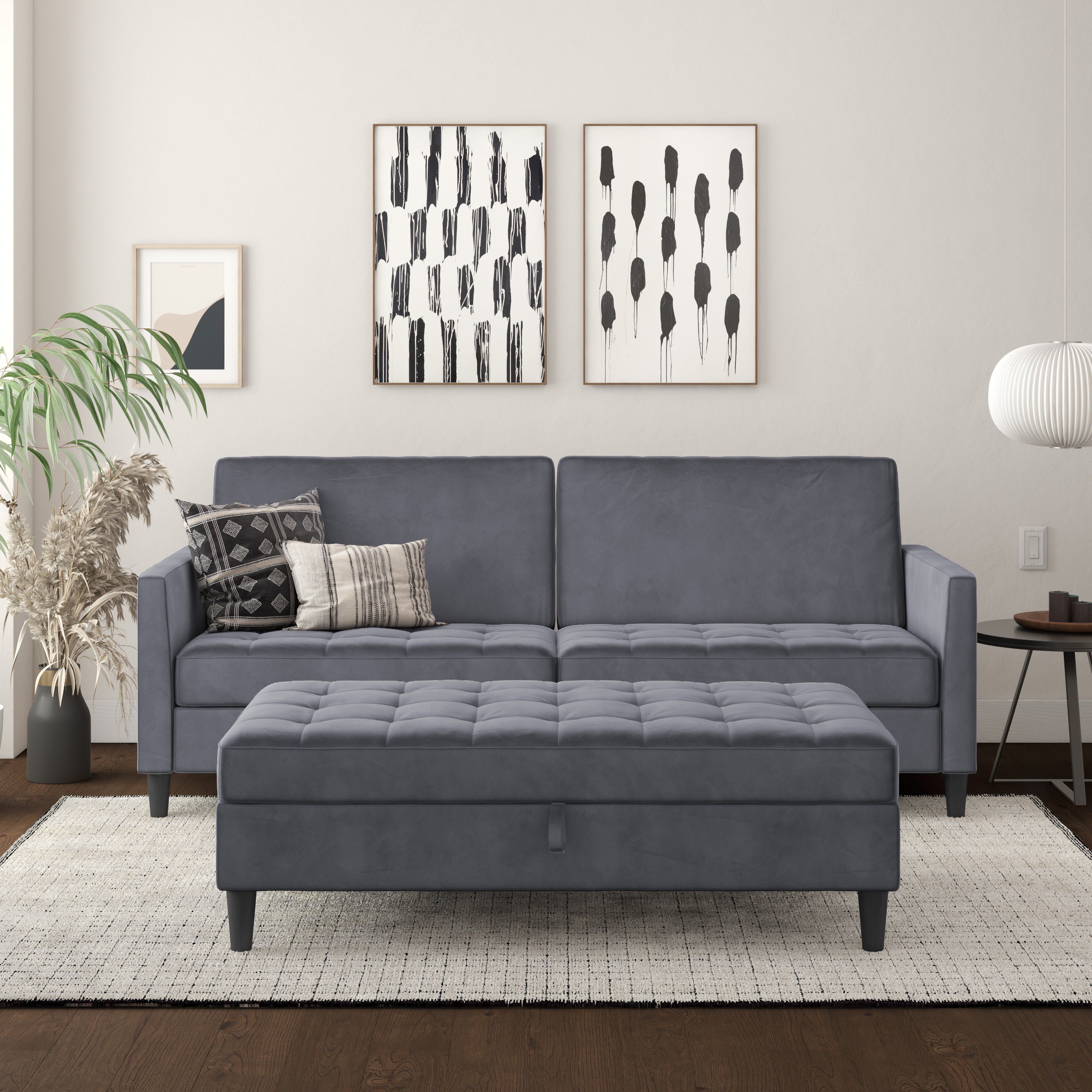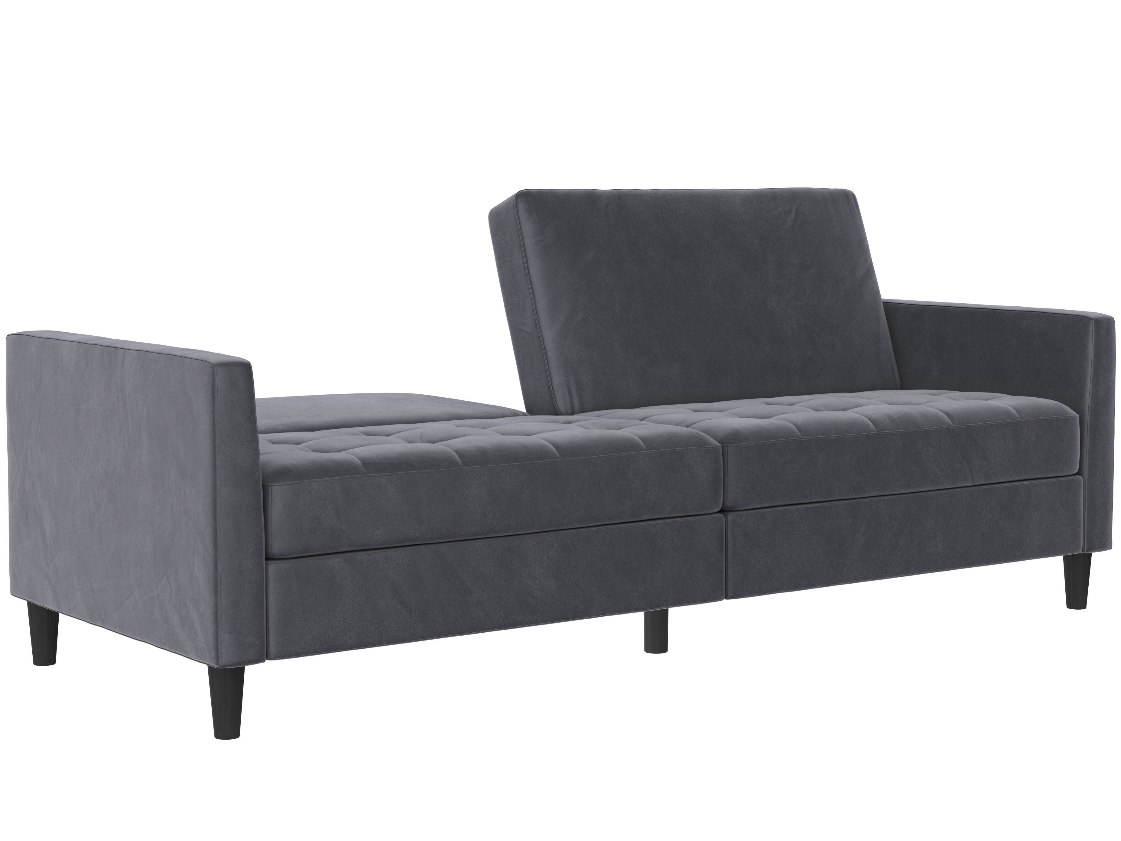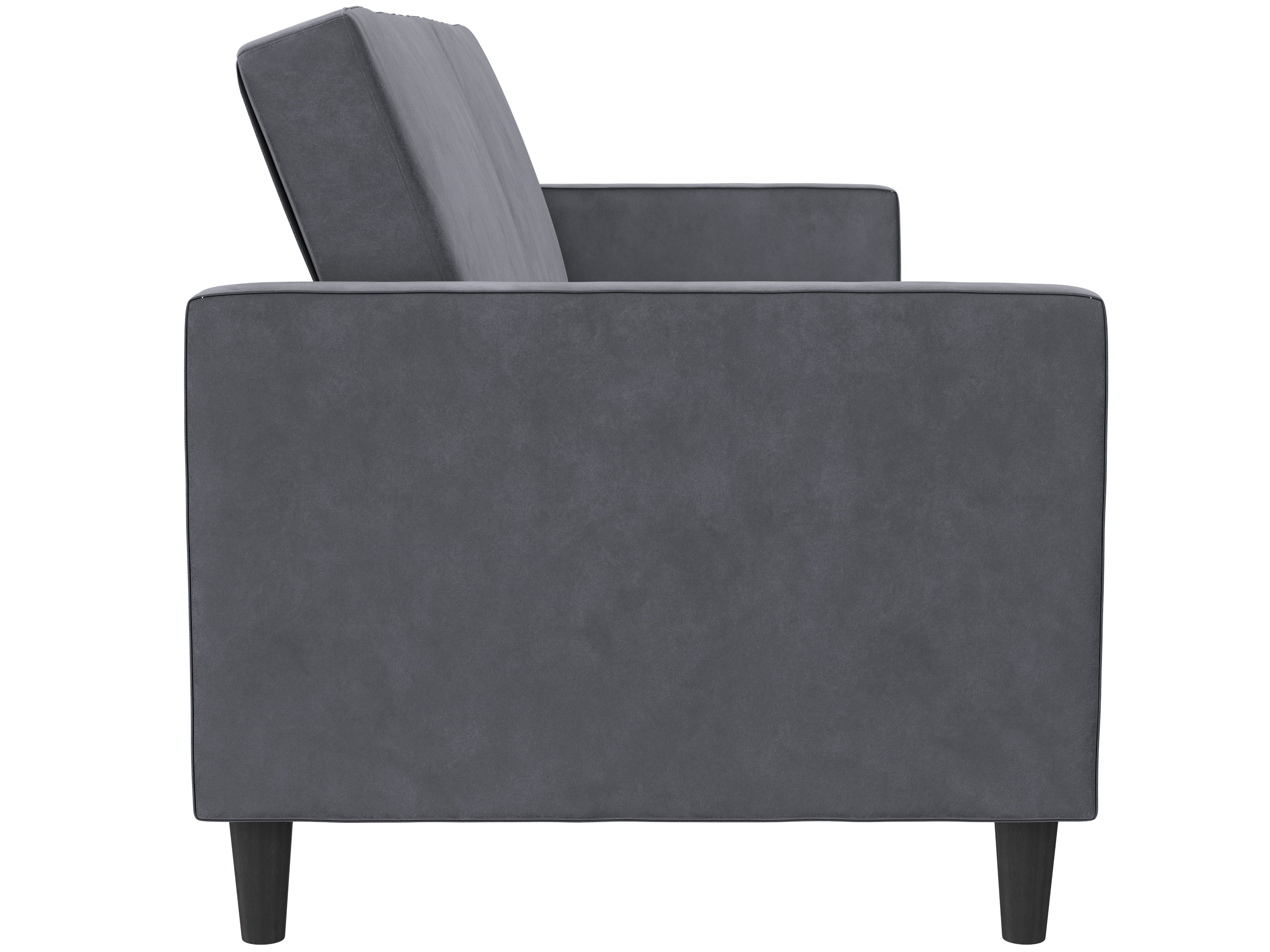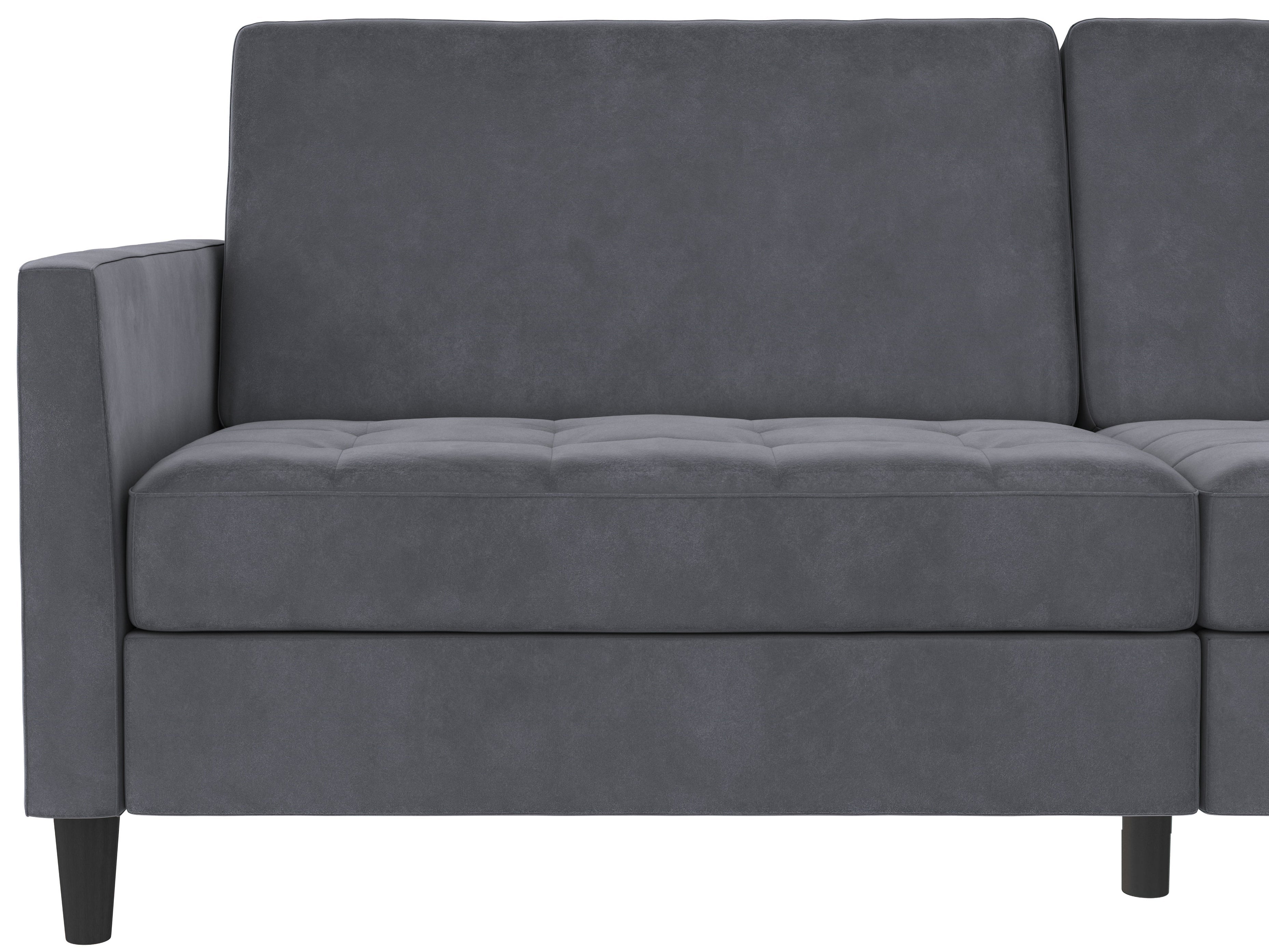 Denne sofa har en moderne stil. Den er bygget med konstrueret træ og fløjlsbetræk. Polstret er fyldt med skum for komfort. Den har en udtrækbar liggeflade og er derfor et sove- og hvileområde i ét. Sofaen kan indstilles manuelt. Den omdannes let til en gæsteseng.