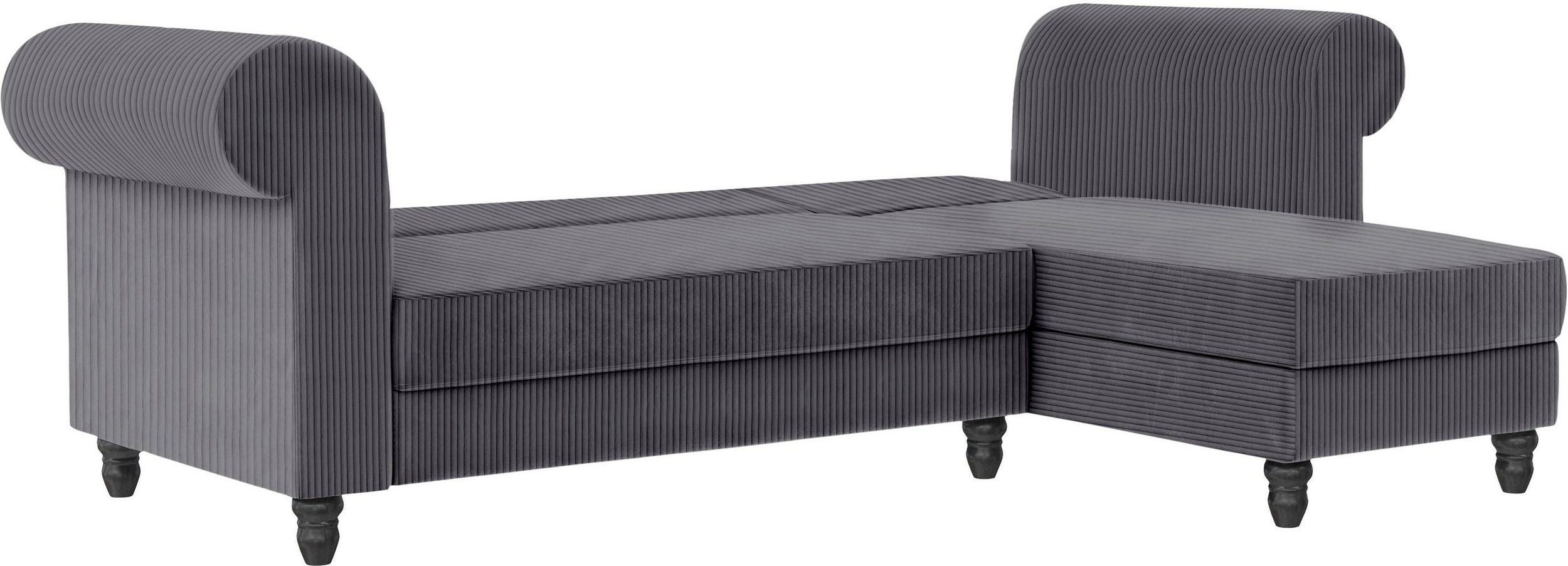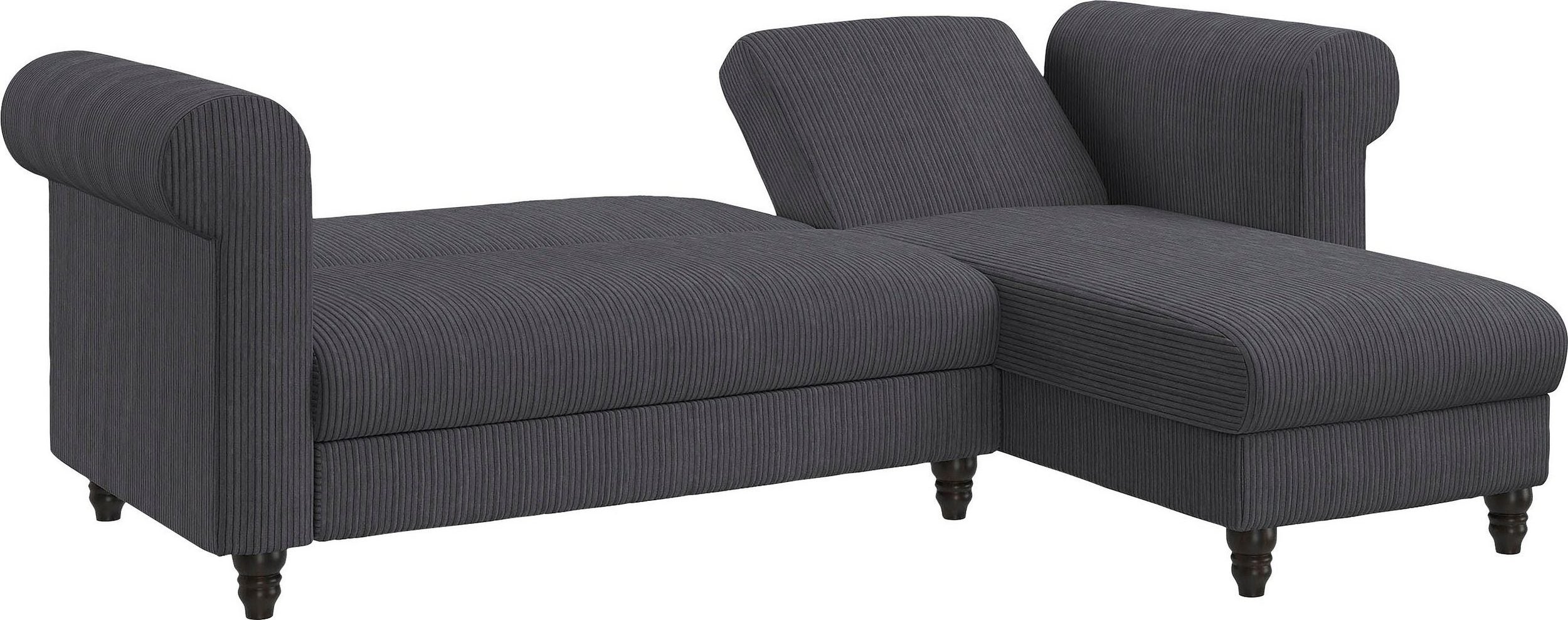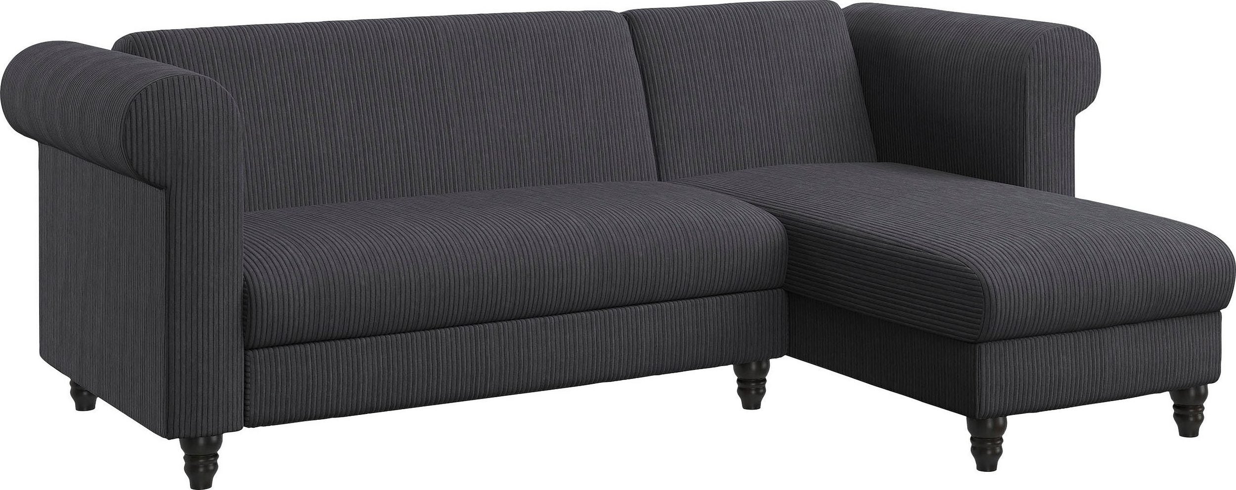 En permanent elastisk og behagelig siddeflade, det er, hvad du får med denne sovesofa. Den er udstyret med højkvalitets bølgeophæng. Denne sovesofa har en udtrækbar liggeflade, så den kan bruges både som hjørnesofa og som gæsteseng. Produktet er manuelt justerbart og kan bringes i den ønskede position med nogle få enkle trin. De sorte massive træben imponerer med deres unikke udseende.