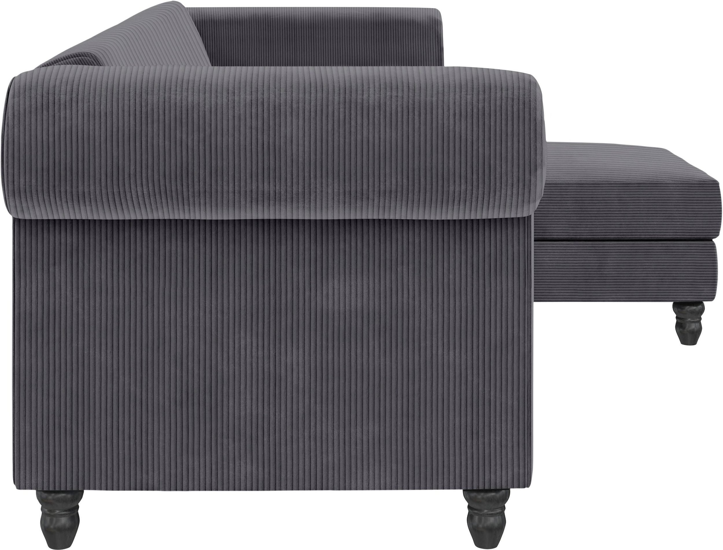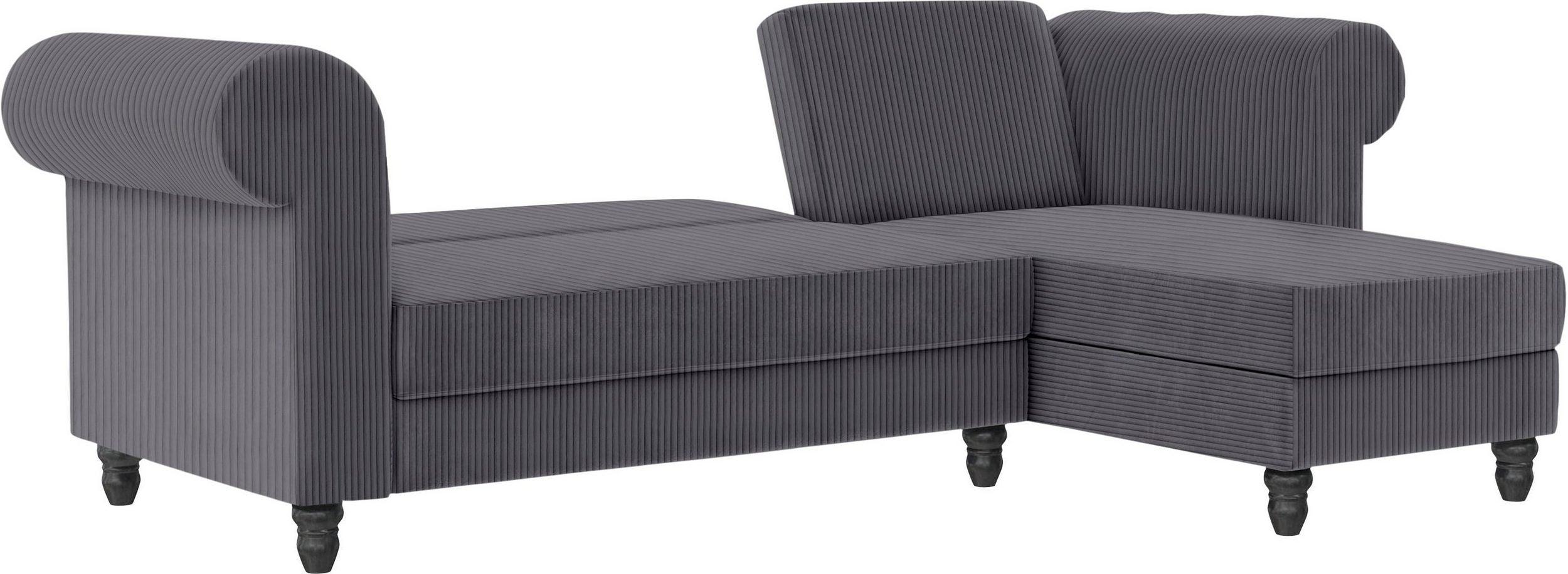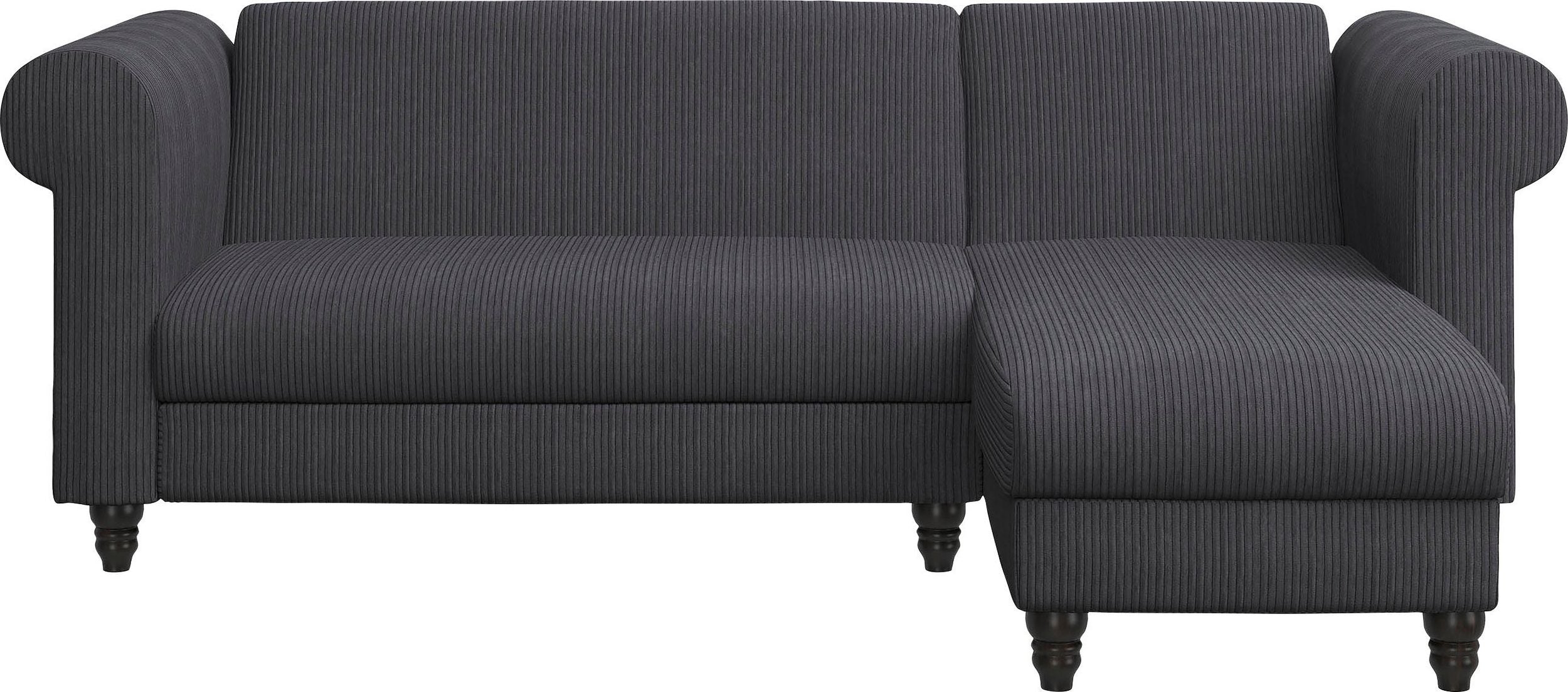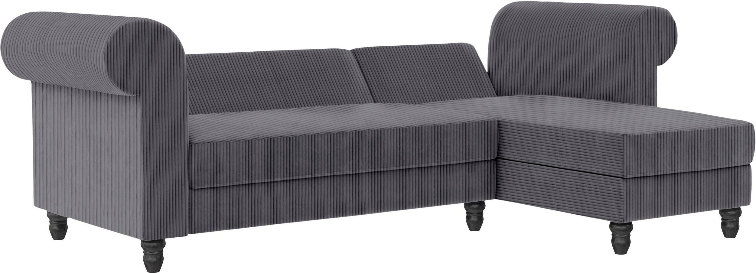 En permanent elastisk og behagelig siddeflade, det er, hvad du får med denne sovesofa. Den er udstyret med højkvalitets bølgeophæng. Denne sovesofa har en udtrækbar liggeflade, så den kan bruges både som hjørnesofa og som gæsteseng. Produktet er manuelt justerbart og kan bringes i den ønskede position med nogle få enkle trin. De sorte massive træben imponerer med deres unikke udseende.