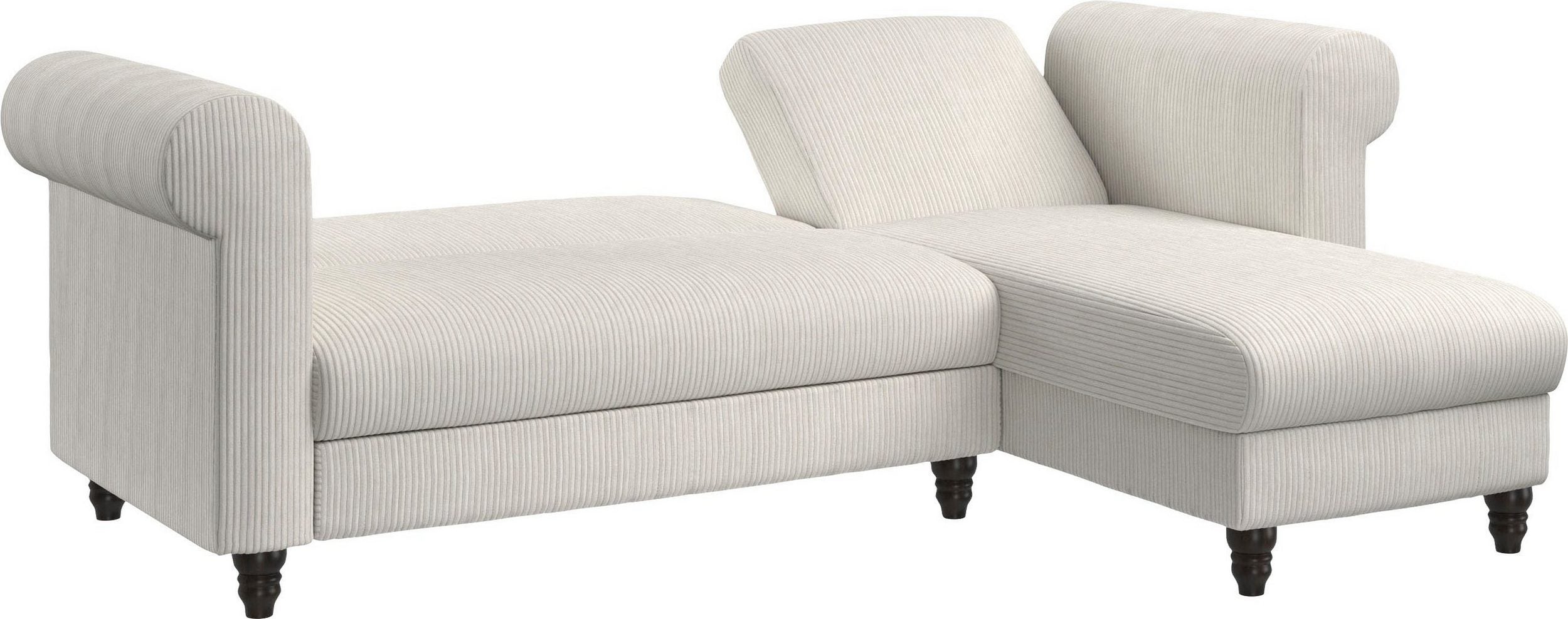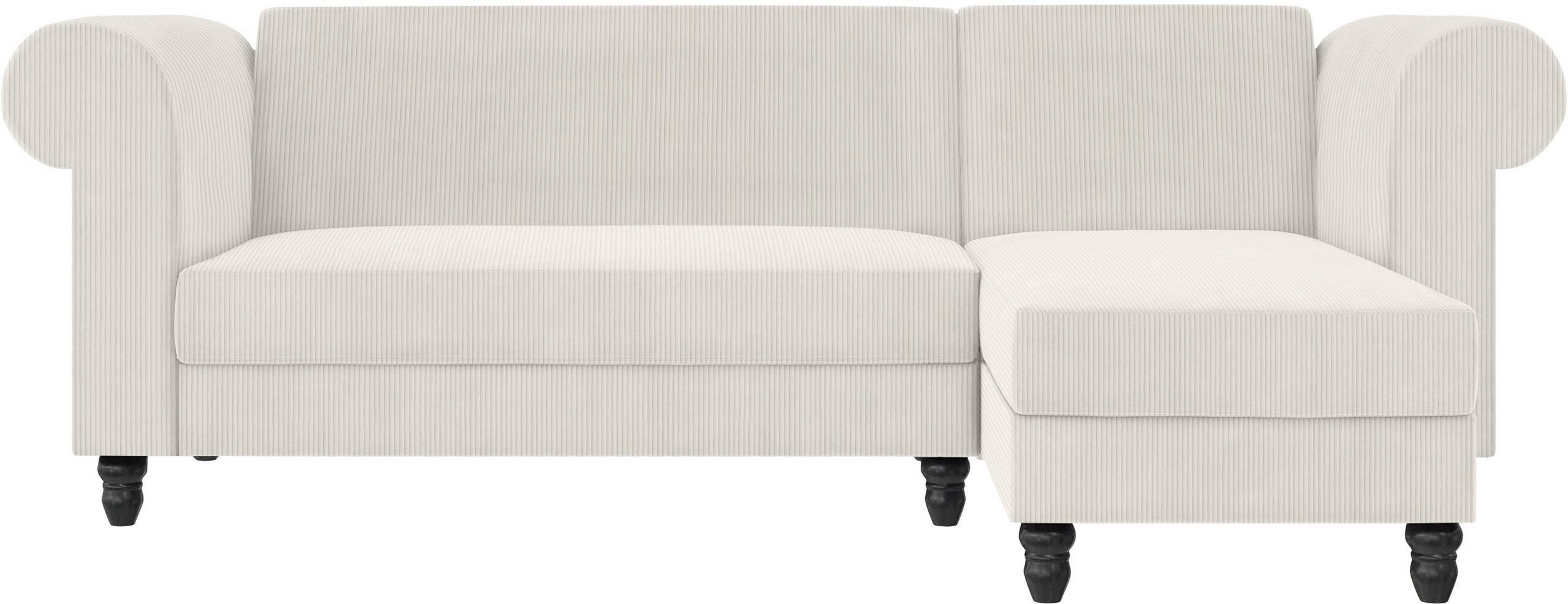 En permanent elastisk og behagelig siddeflade, det er, hvad du får med denne sovesofa. Den er udstyret med højkvalitets bølgeophæng. Denne sovesofa har en udtrækbar liggeflade, så den kan bruges både som hjørnesofa og som gæsteseng. Produktet er manuelt justerbart og kan bringes i den ønskede position med nogle få enkle trin. De sorte massive træben imponerer med deres unikke udseende.