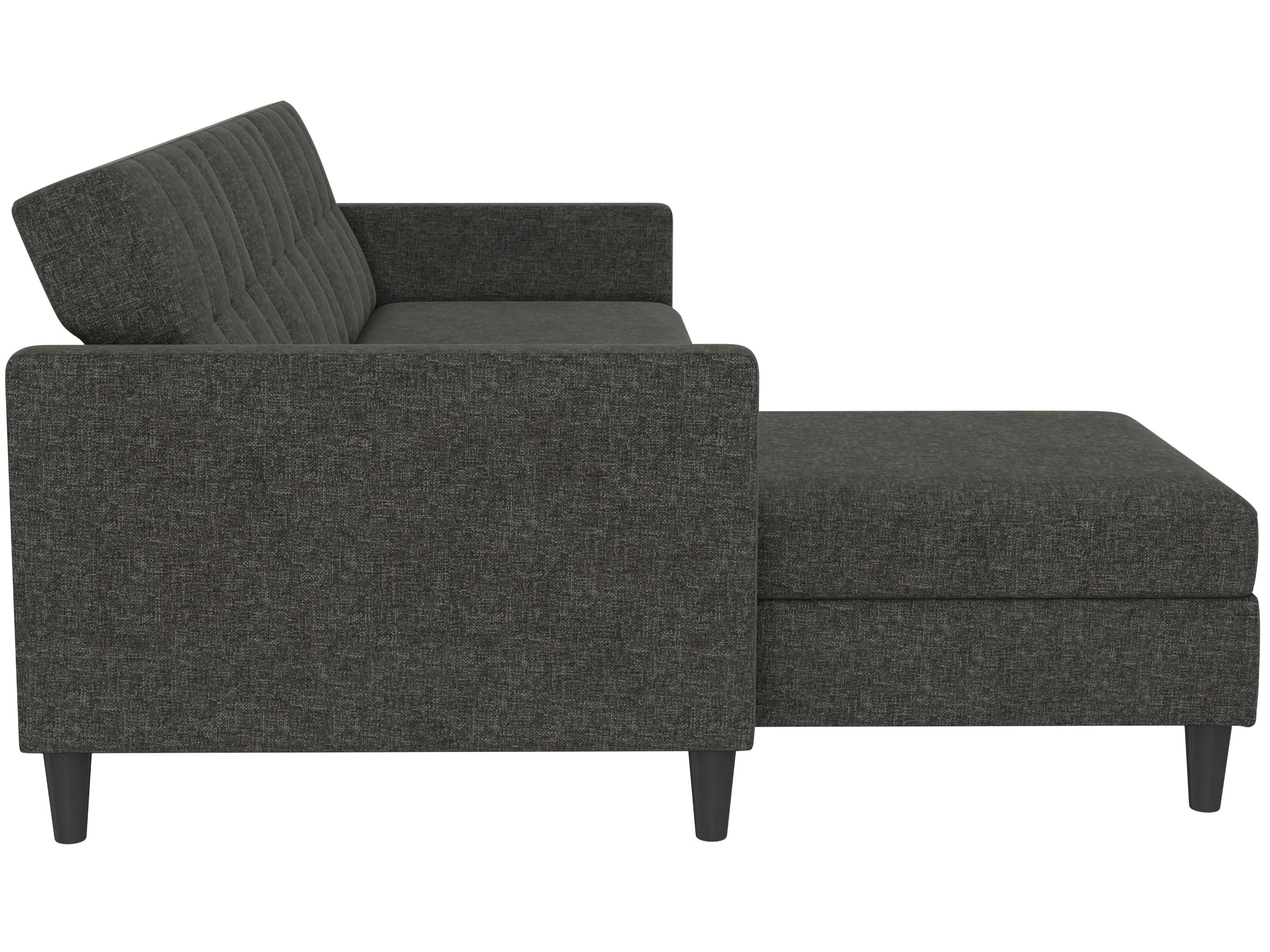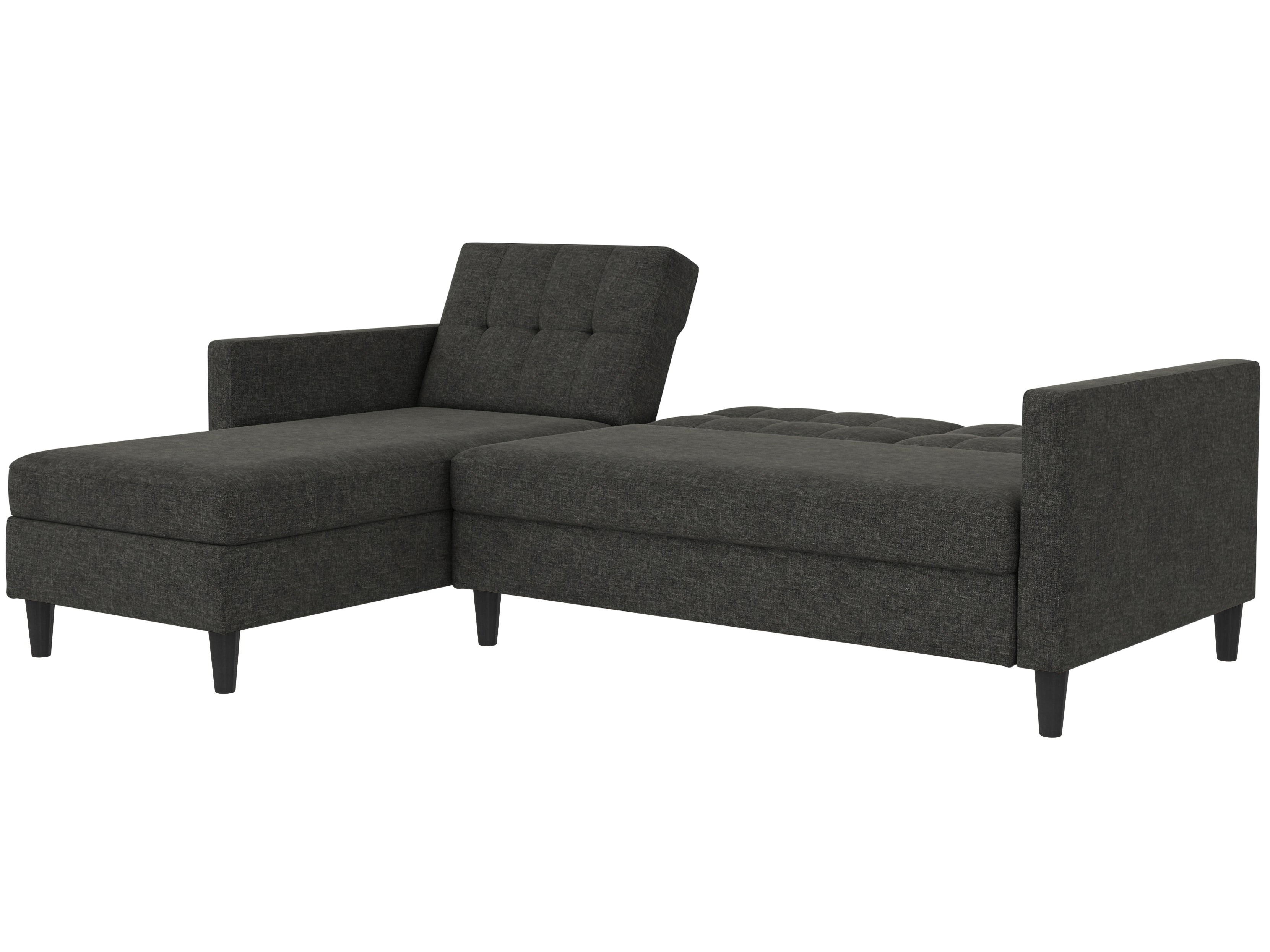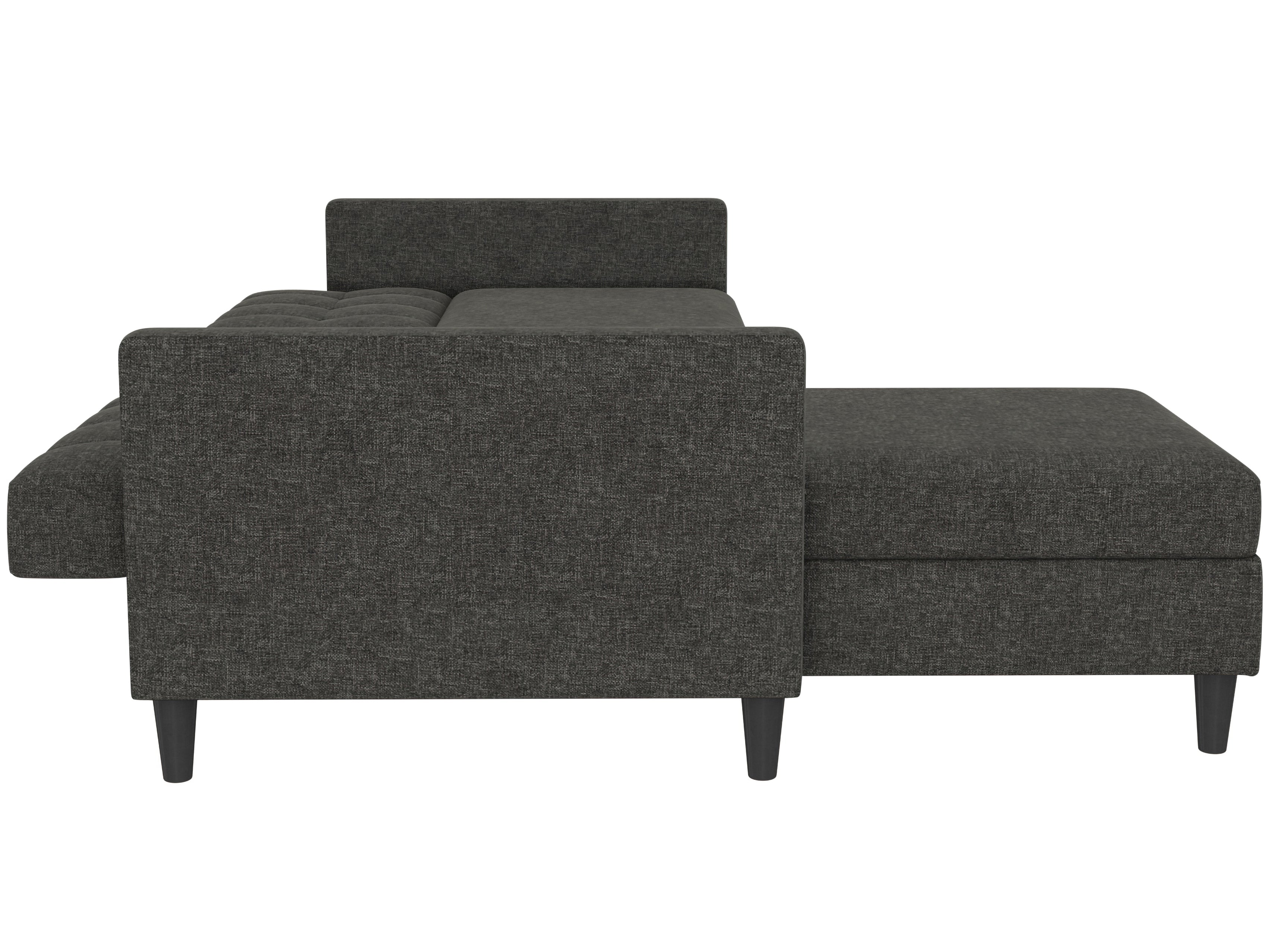 Denne sovesofa har en moderne stil. Det er bygget med konstrueret træ og højkvalitets dækmaterialer. Polstret er fyldt med skum for den rette komfort. Hjørnesofaen har en udtrækbar liggeflade den kan bruges som gæsteseng. Den er manuelt justerbar. Chaiselongen kan åbnes til opbevaring.