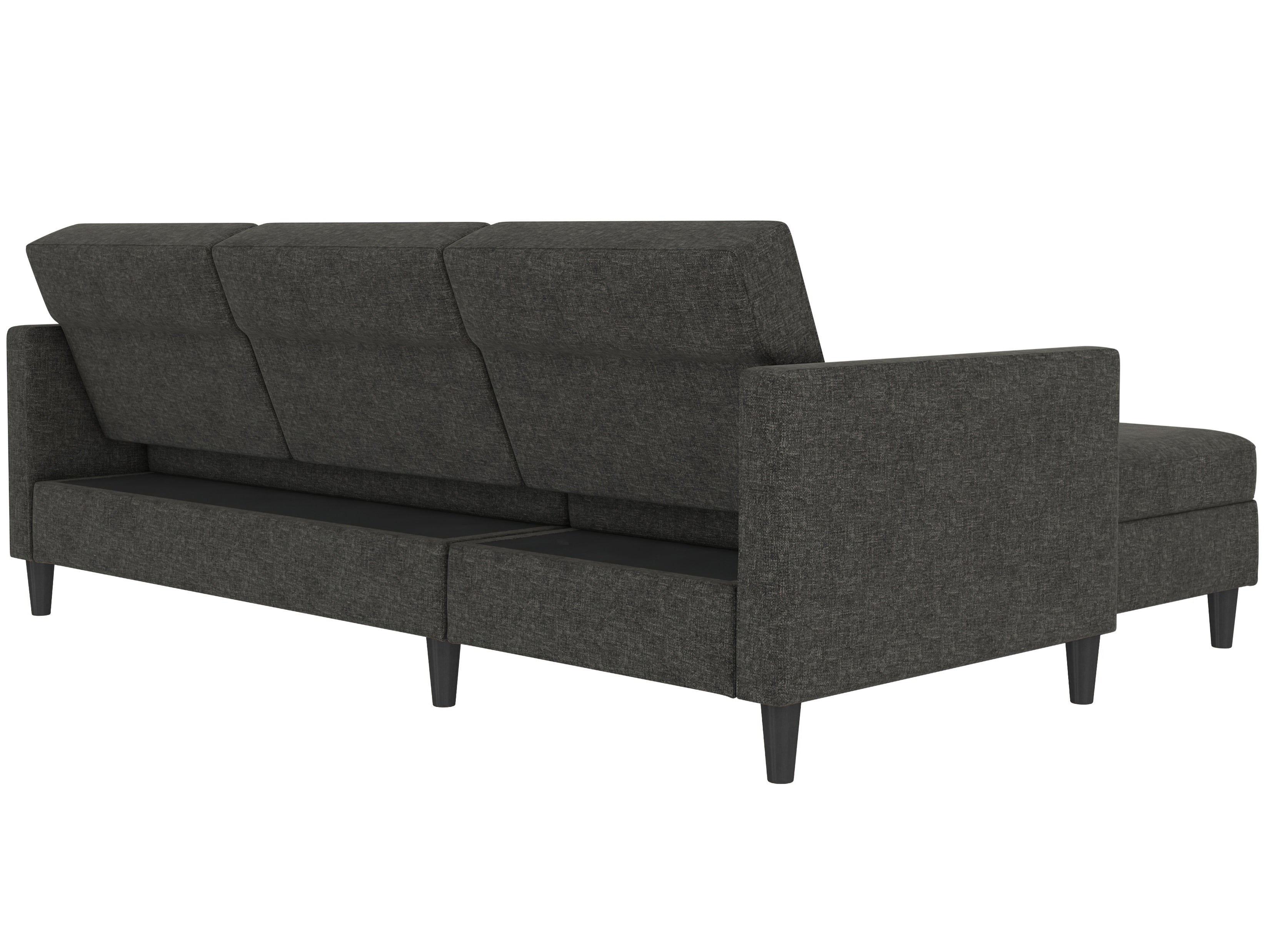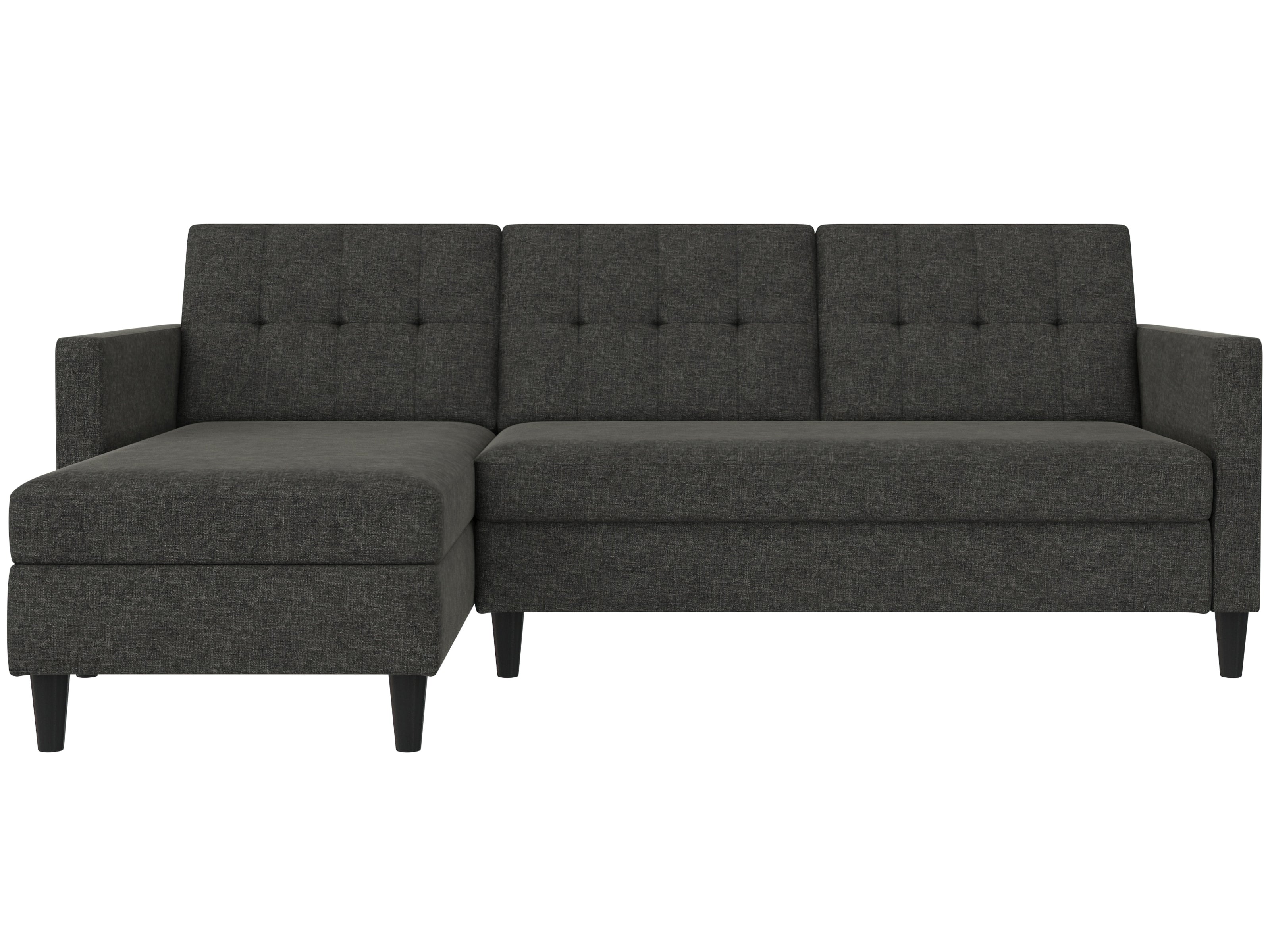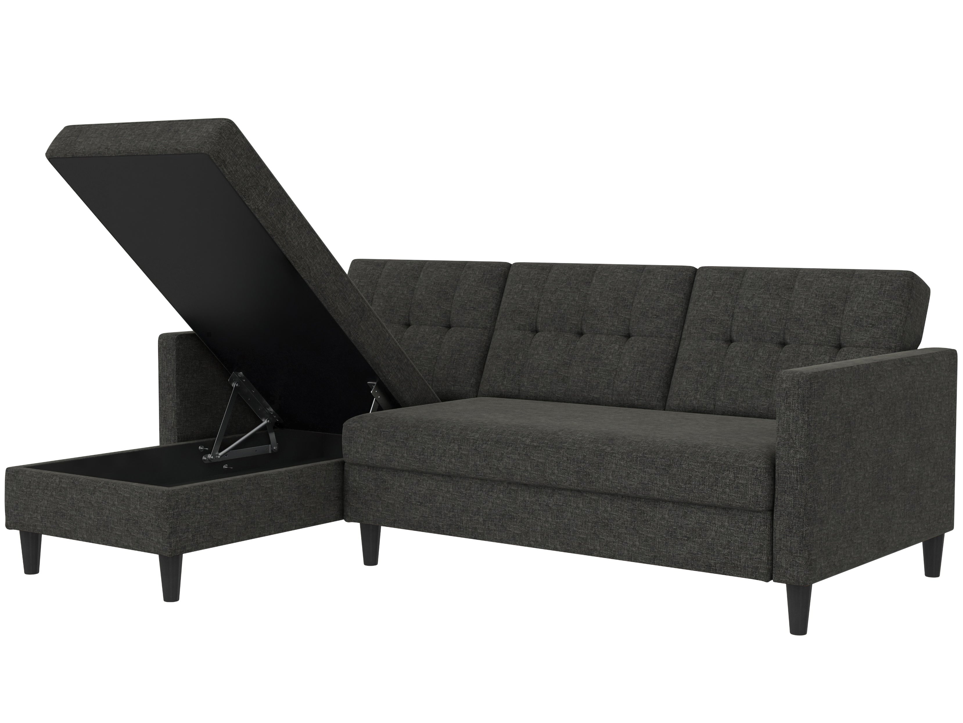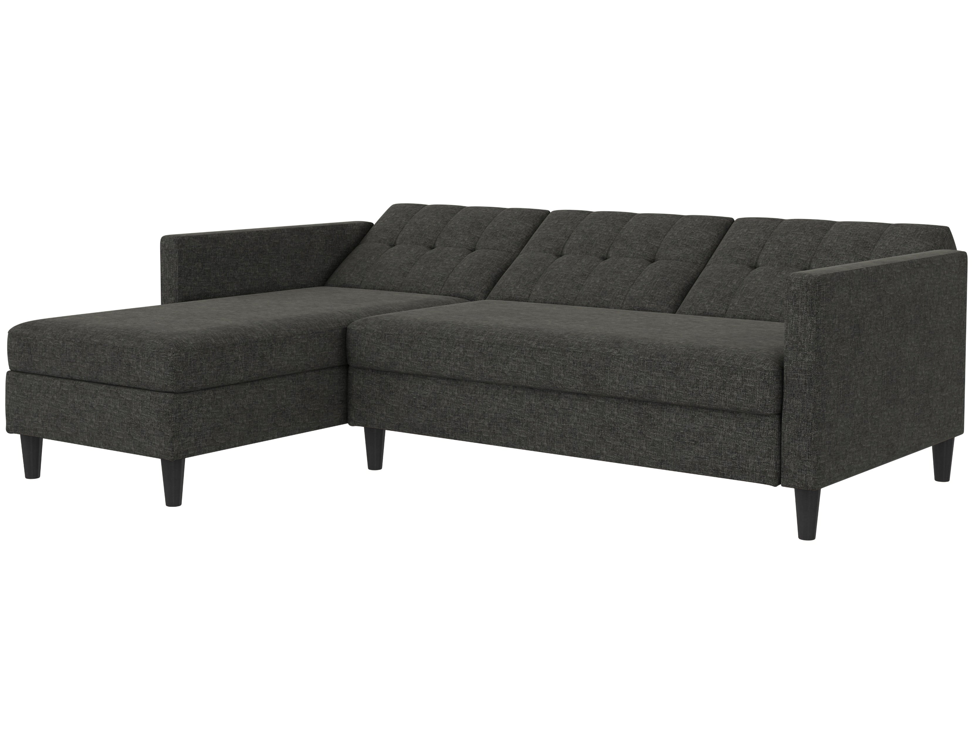 Denne sovesofa har en moderne stil. Det er bygget med konstrueret træ og højkvalitets dækmaterialer. Polstret er fyldt med skum for den rette komfort. Hjørnesofaen har en udtrækbar liggeflade den kan bruges som gæsteseng. Den er manuelt justerbar. Chaiselongen kan åbnes til opbevaring.