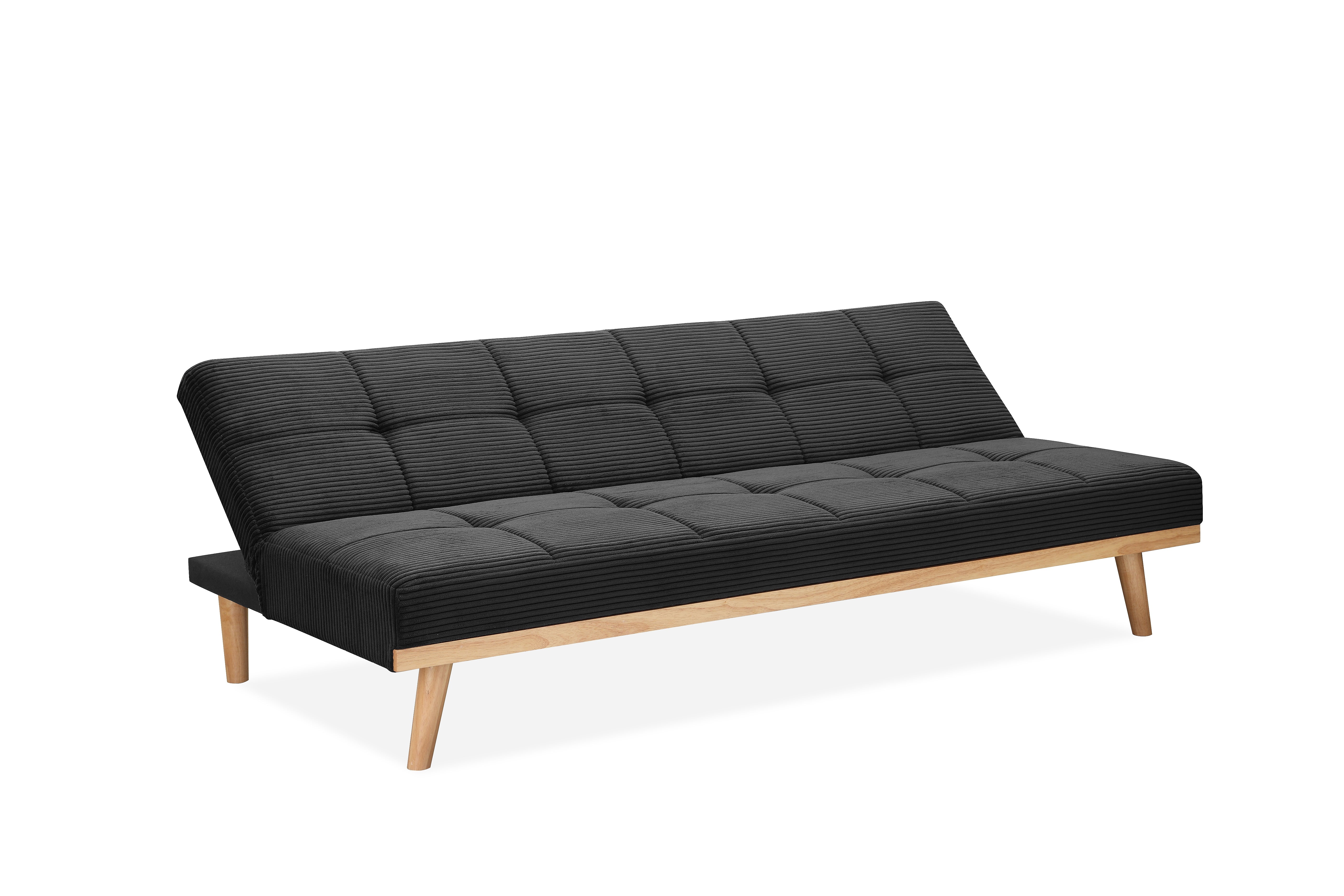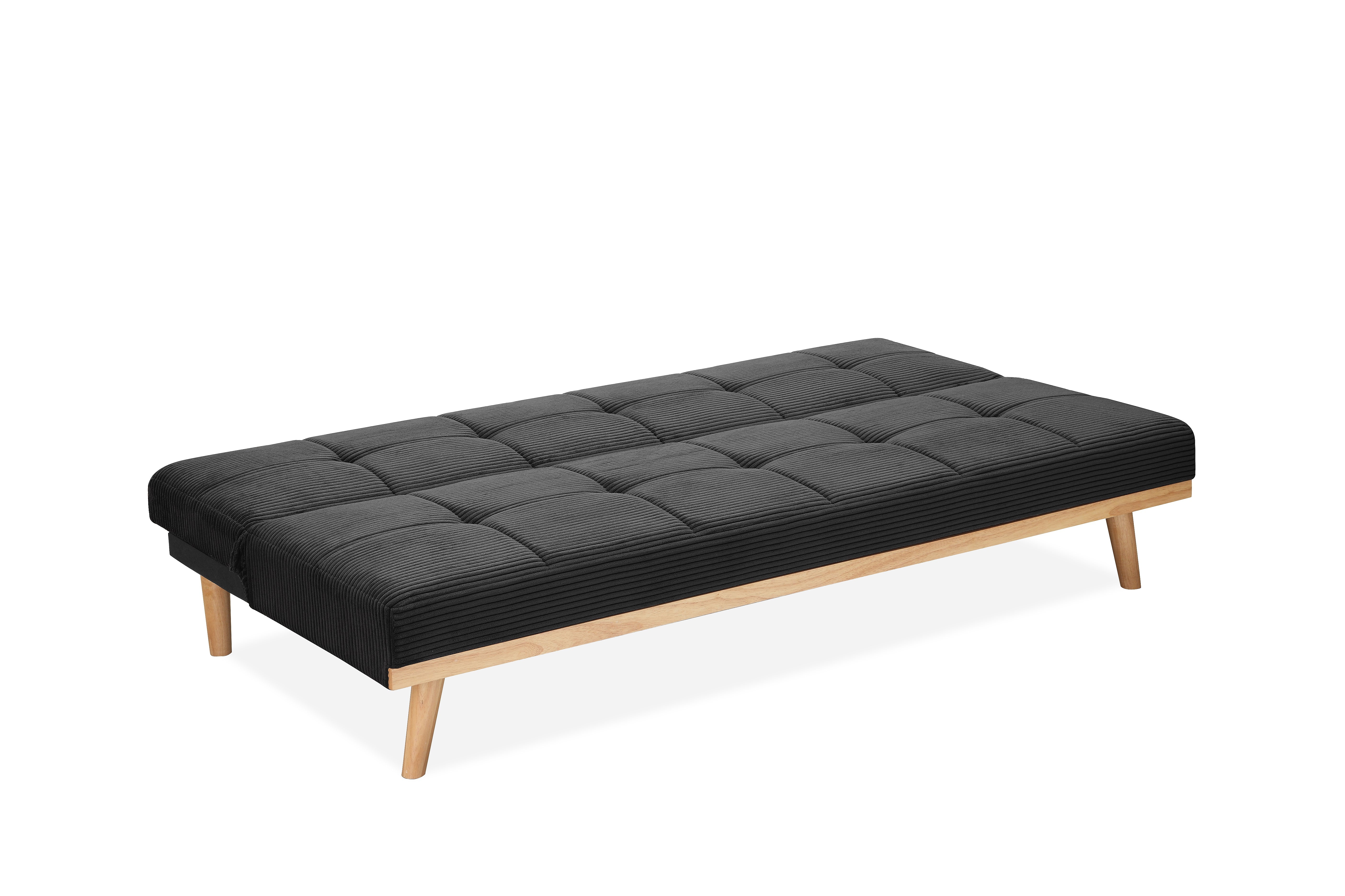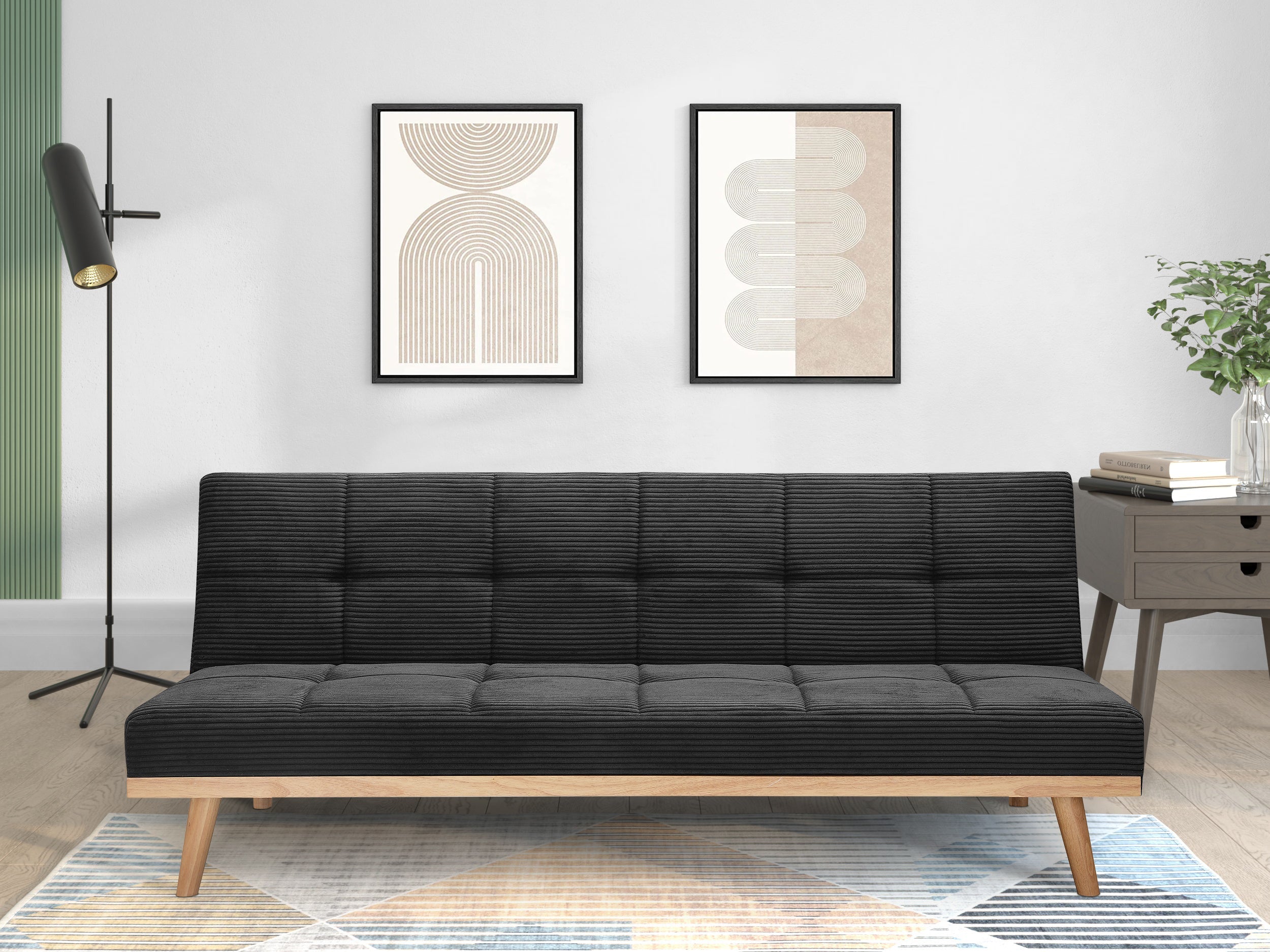 Denne futon-sovesofa forvandles ubesværet fra en sofa til en daybed, der tilbyder alsidighed og komfort. Madrassen måler cirka 101 x 190 cm med en siddehøjde på 37 cm. Understøttet af massive træben giver den et robust og stilfuldt fundament. Sovesofaen er polstret med skum for holdbarhed og komfort, og den understøtter op til 300 kg. Ideel til både at sidde og sove, den kombinerer funktionalitet med et slankt design.