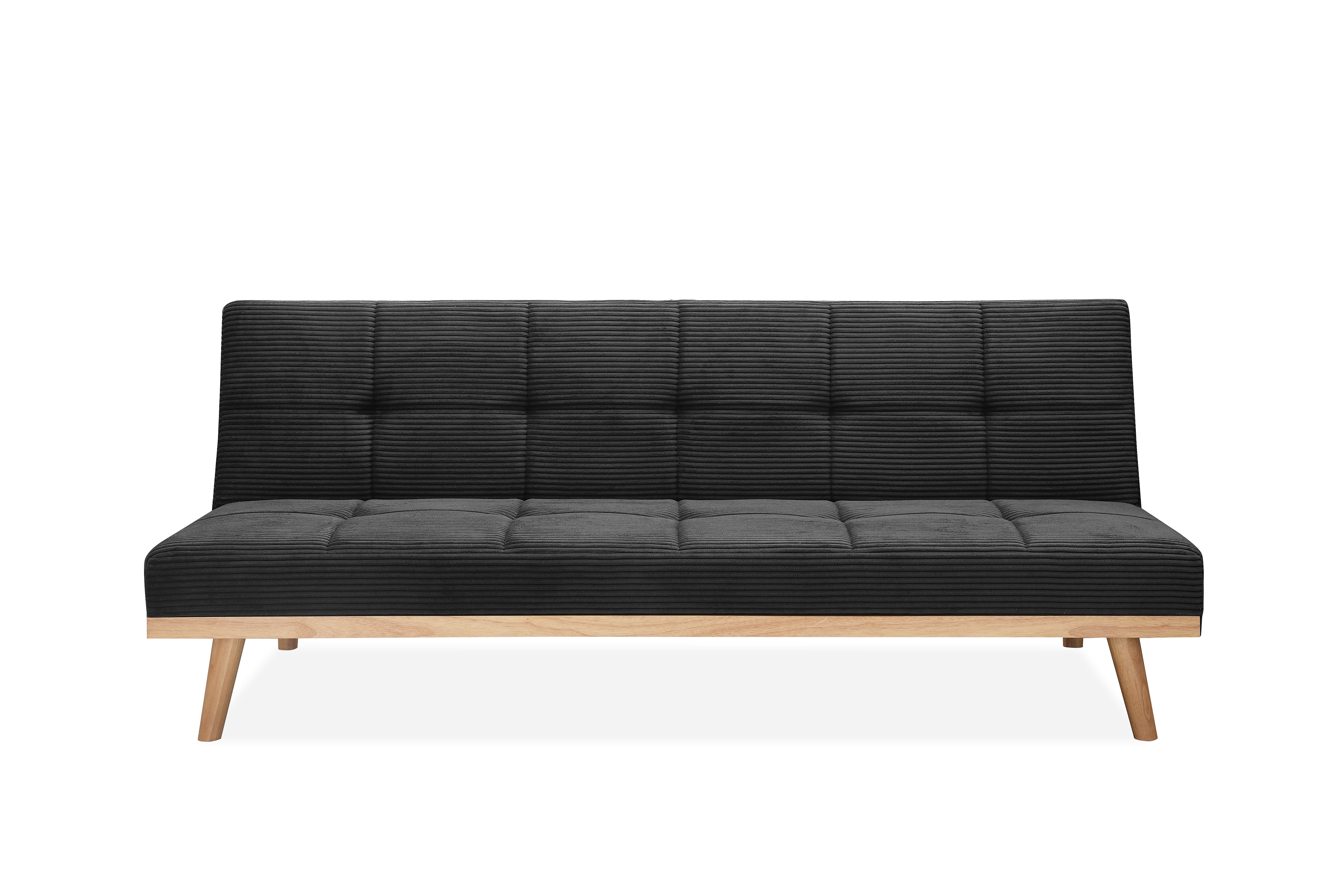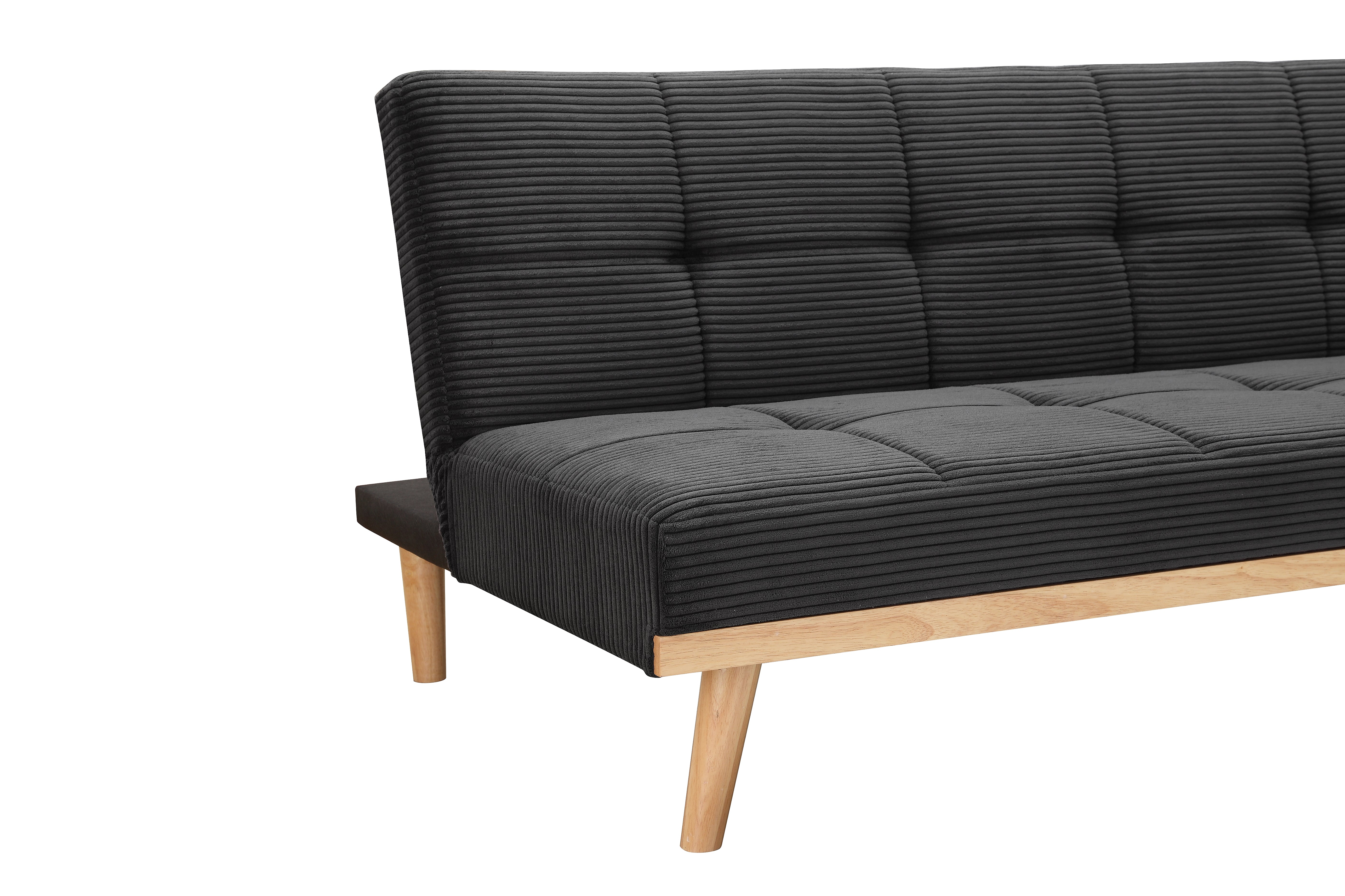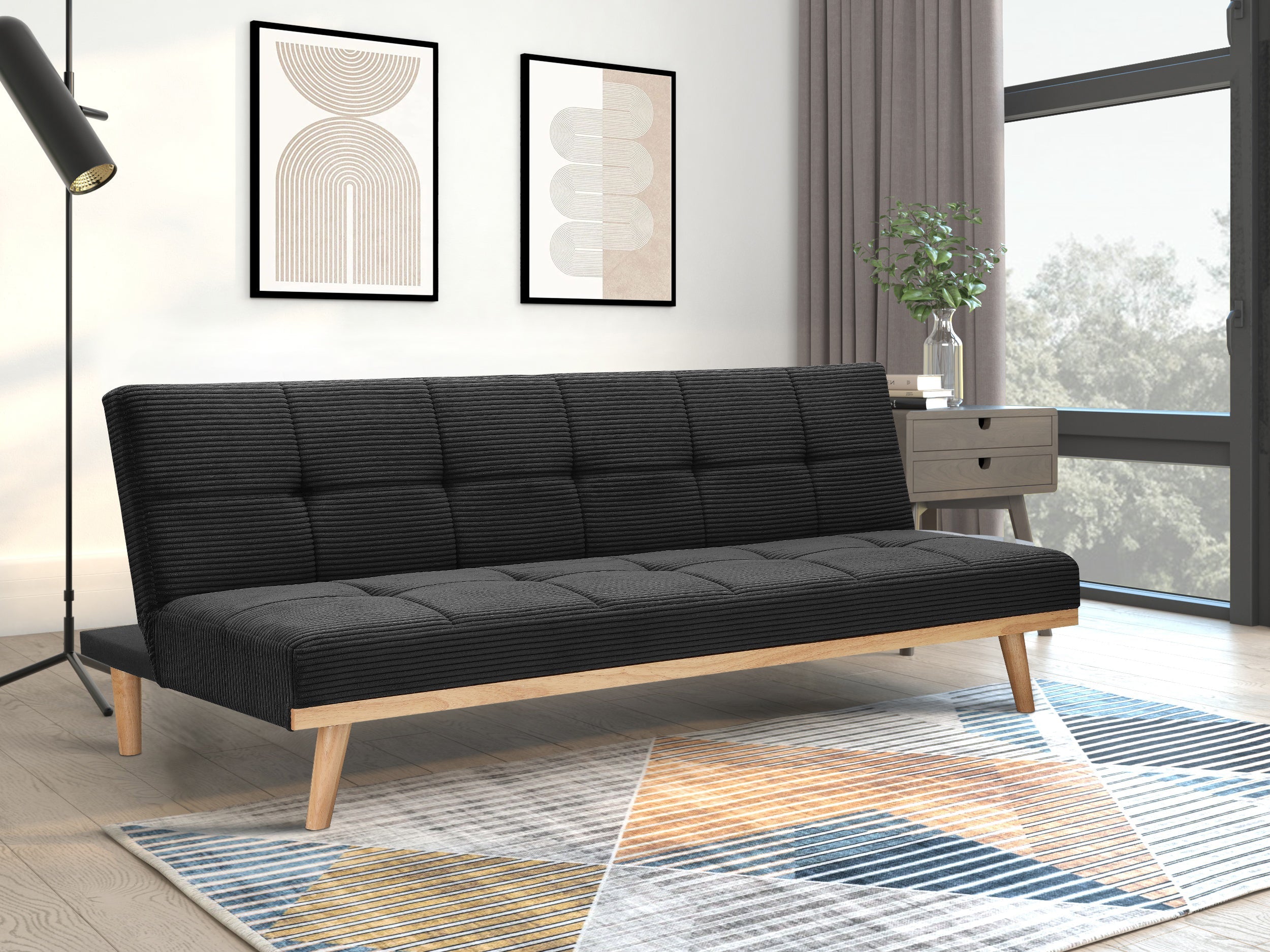Denne futon-sovesofa forvandles ubesværet fra en sofa til en daybed, der tilbyder alsidighed og komfort. Madrassen måler cirka 101 x 190 cm med en siddehøjde på 37 cm. Understøttet af massive træben giver den et robust og stilfuldt fundament. Sovesofaen er polstret med skum for holdbarhed og komfort, og den understøtter op til 300 kg. Ideel til både at sidde og sove, den kombinerer funktionalitet med et slankt design.