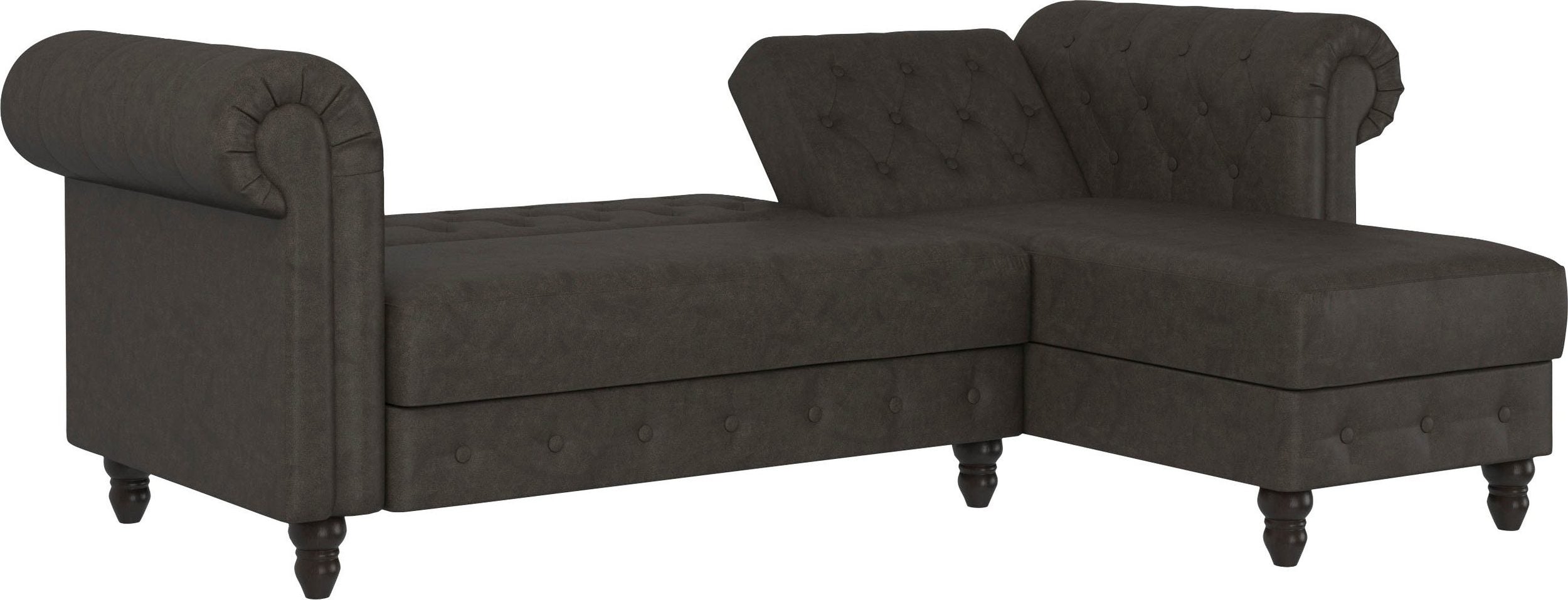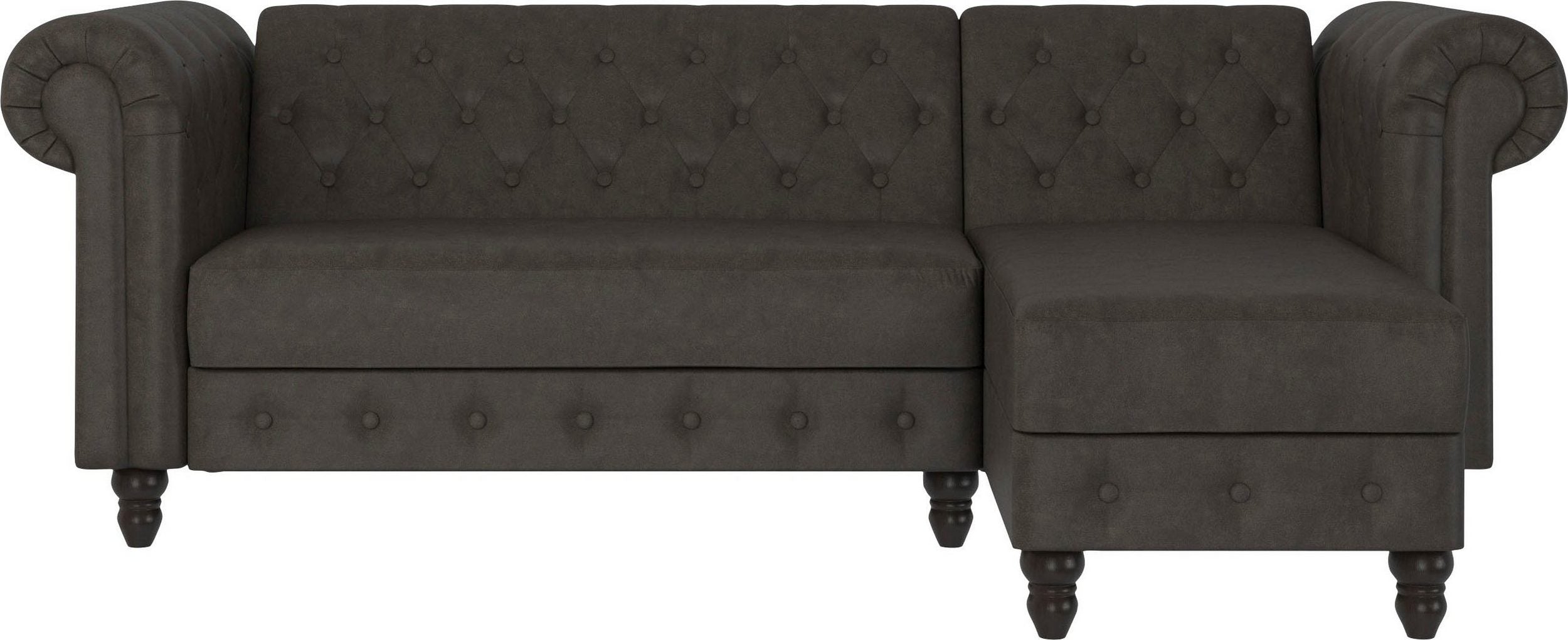 Sovesofa chaiselong i mikrofiber antracit Chesterfield