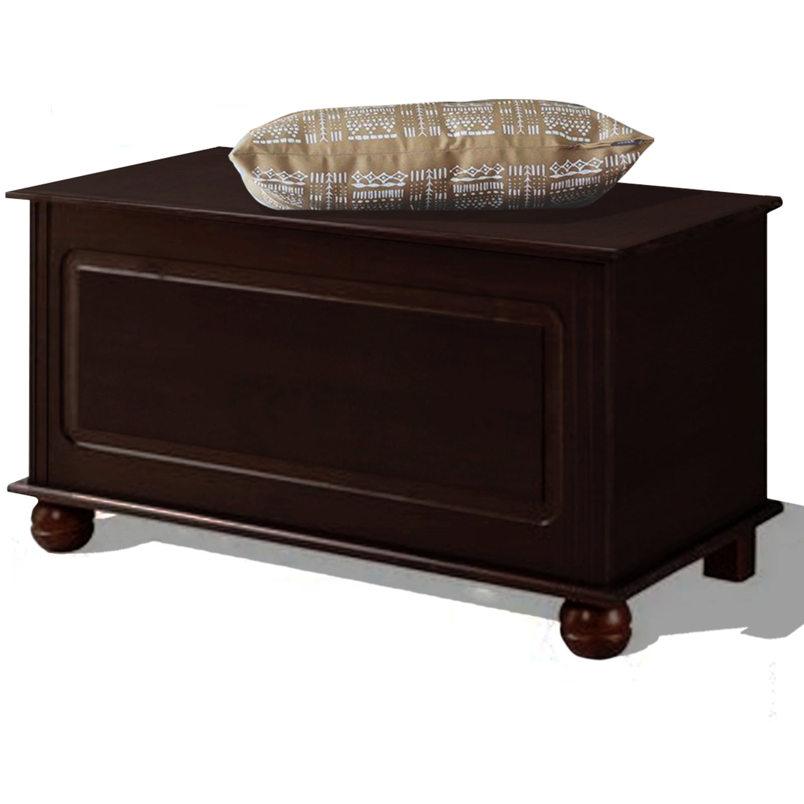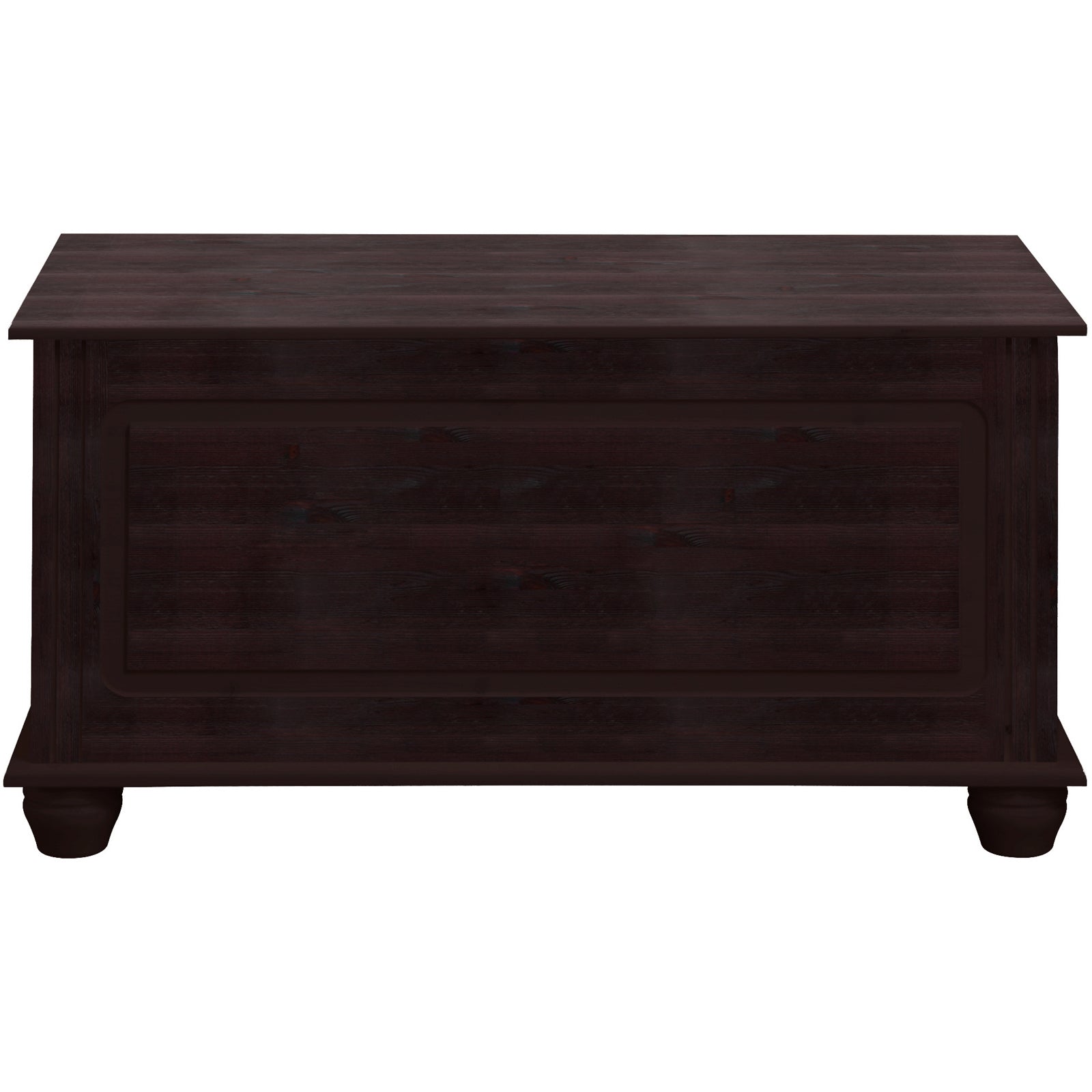 En lille perle Denne maleriske kommode i den klassiske landhusstil er et ægte blikfang, der kan forfine mange rum. Fronten er dekoreret med flotte fræsninger, og fronten af kroppen har stilfulde kuglefødder i træ. Dekoreret med en behagelig pude bliver denne robuste kiste til et fuldt udbygget sæde. Den er udstyret med et hængslet låg og har et stort opbevaringsrum indeni, som giver god plads til sengelinnedstæpper eller andre ting. Denne opbevaringsbænk er lavet af massivt fyrretræ fra bæredygtigt FSC?®-certificeret træ.
