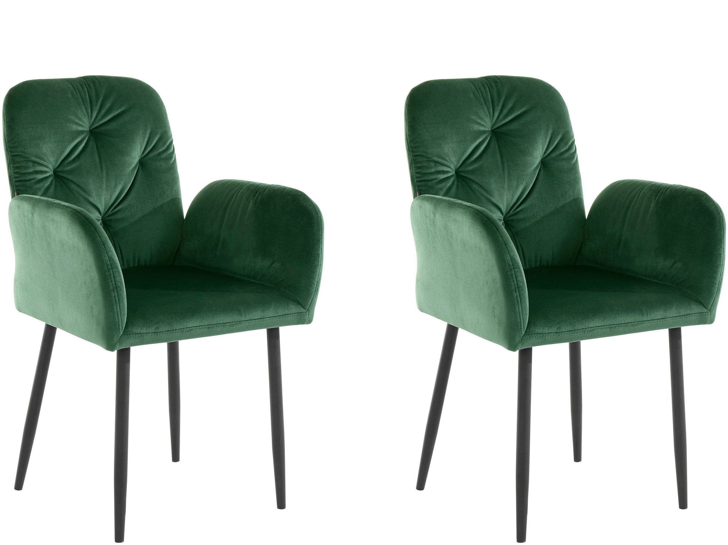 Polstrede spisestuestole Sæt med 2 i fløjl mørkegrøn