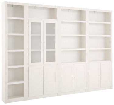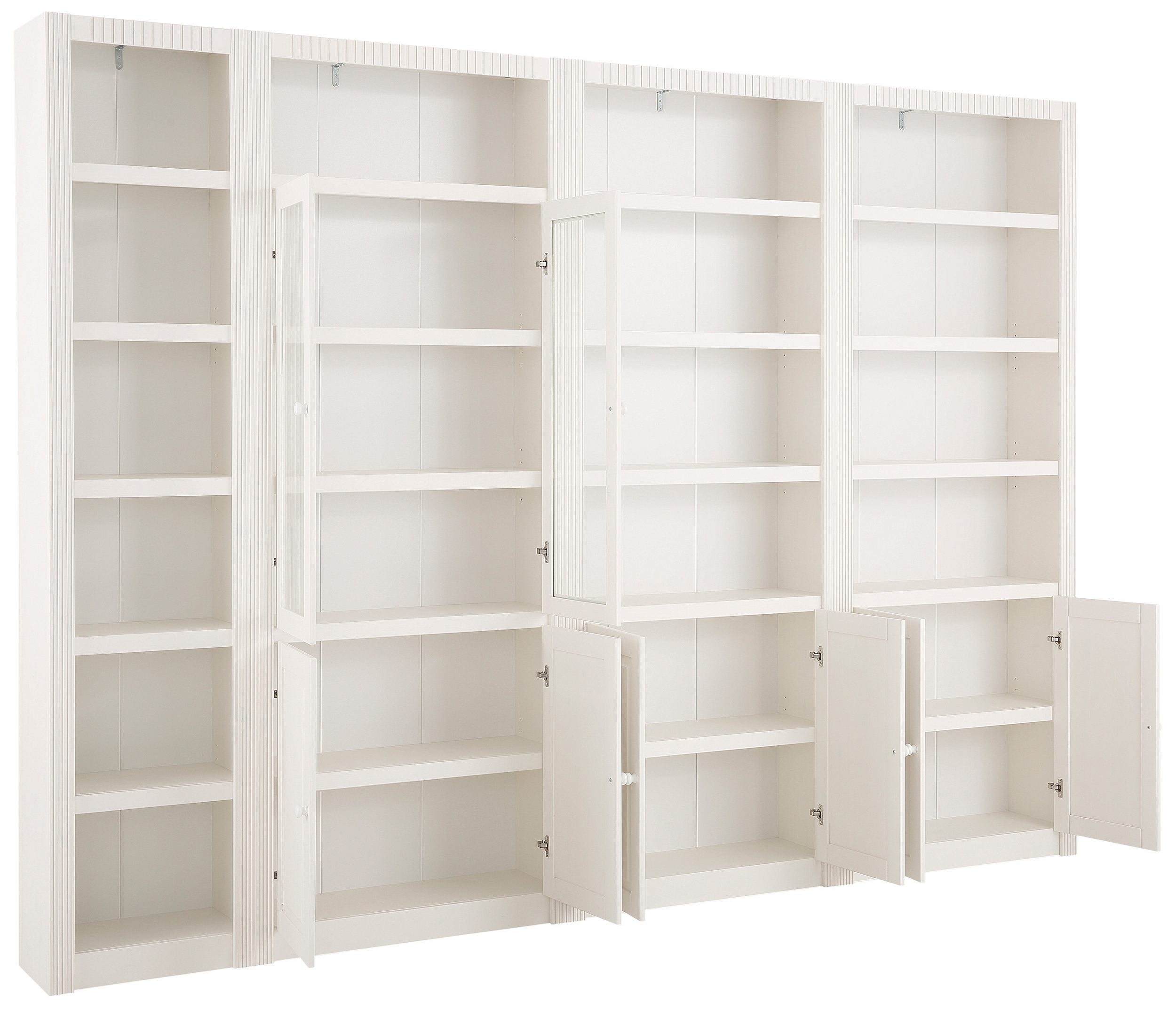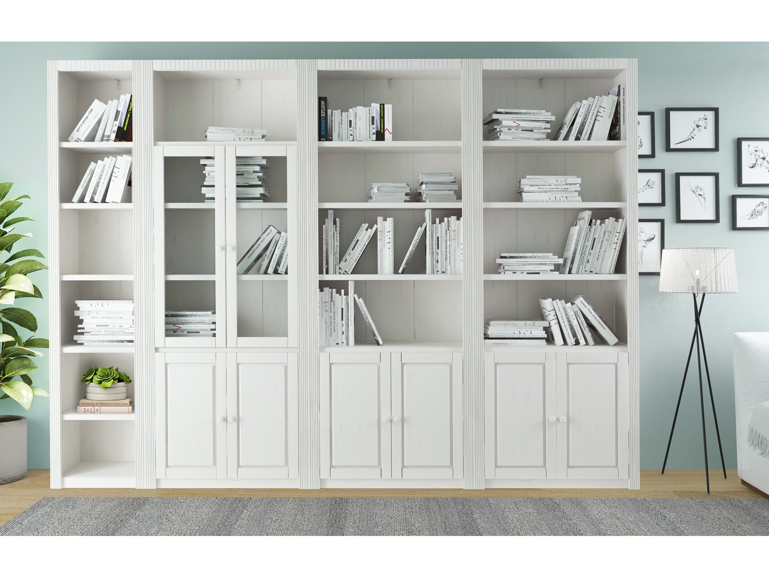 Funktionelt og med smukke funktioner giver det meget rummelige bogkassesystem masser af plads med sine mange rum. Bøger og cd'er har deres plads her såvel som dit yndlingsservice, dekorative keramik eller smukke glasgenstande. Ud over de åbne rum har vægpladens forside også lukkede områder bag træ- og glasdøre, bag hvilke tilbehør og mindre genstande også kan opbevares. De faste og justerbare hylder gør det nemt at designe væghylden efter dine egne individuelle ideer og behov. Bærekapacitet pr. hylde er maksimalt 15 kg.